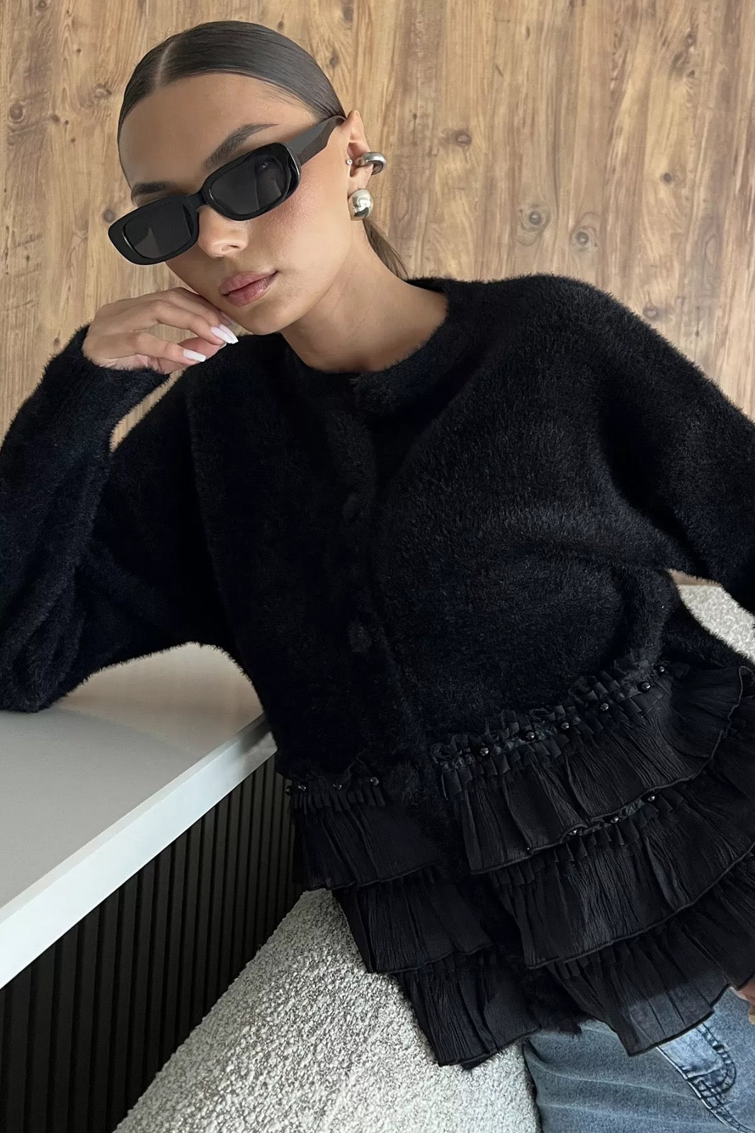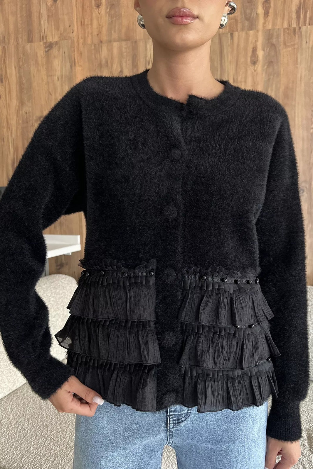 Alt Kısmı Fırfırlı Yumoş Triko Ceket