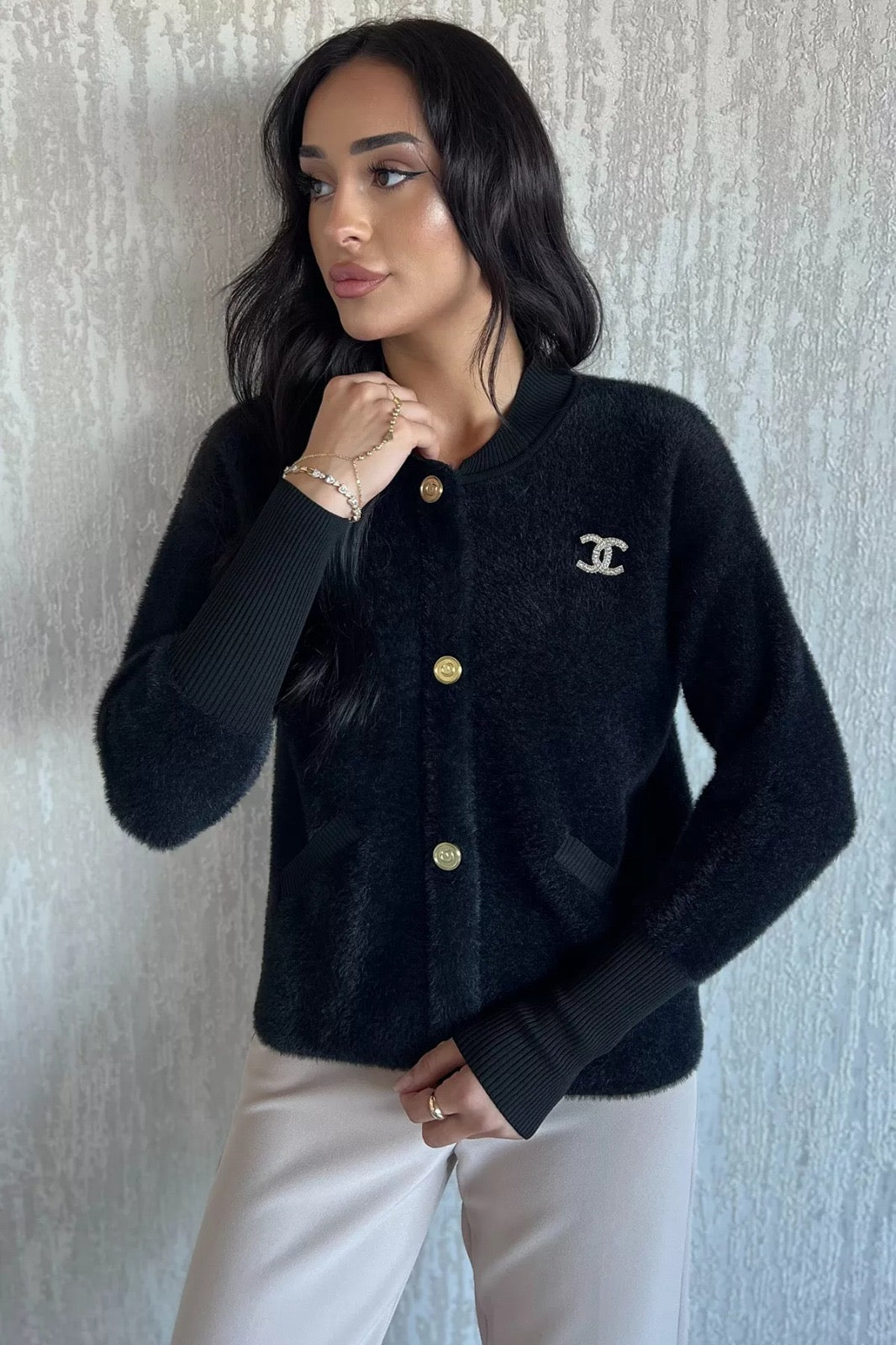 Broşlu Şardonlu Triko Ceket