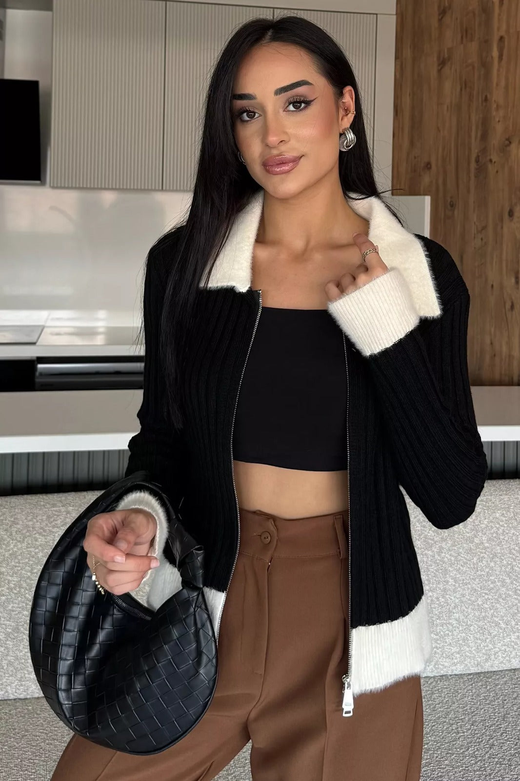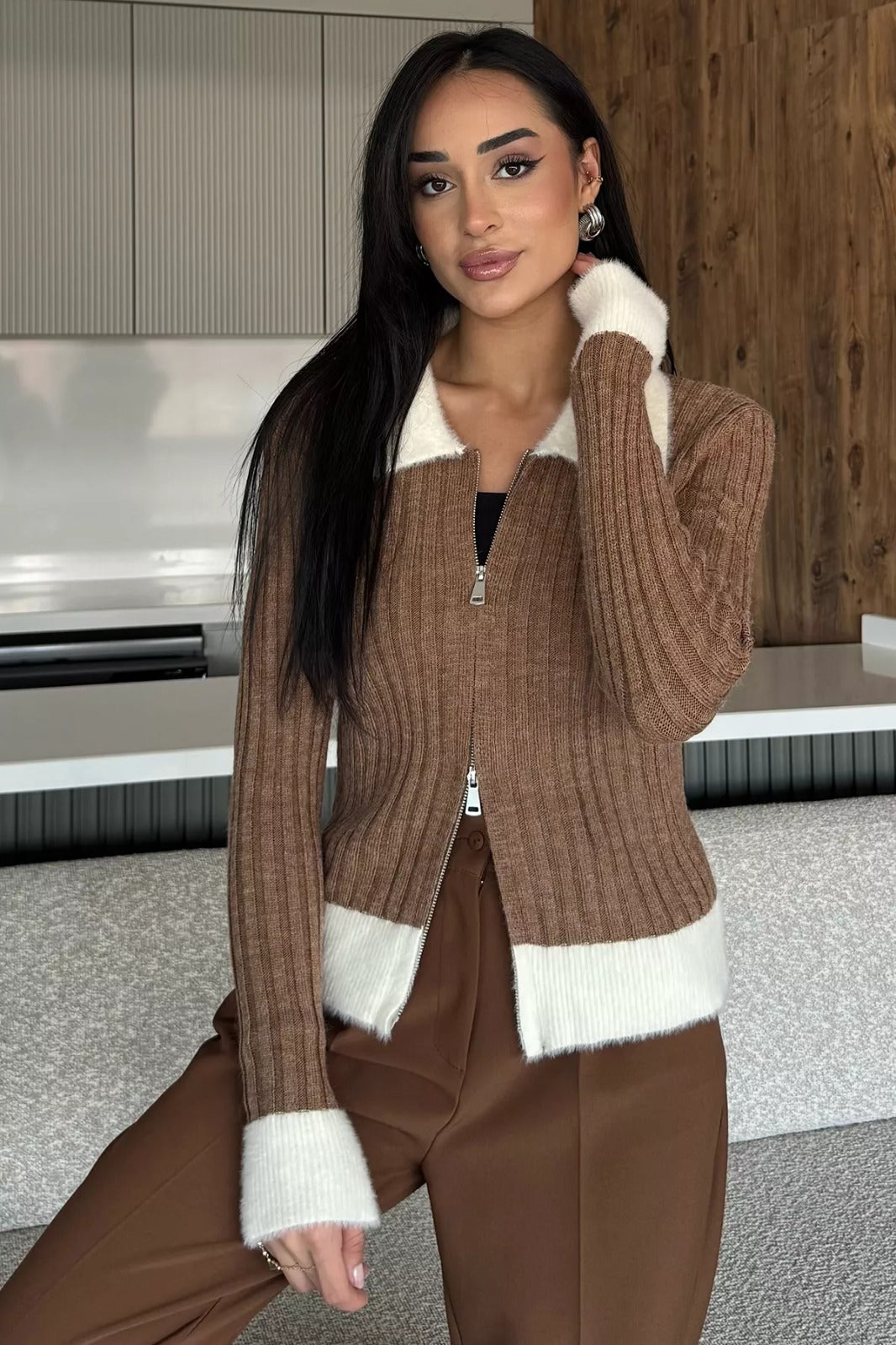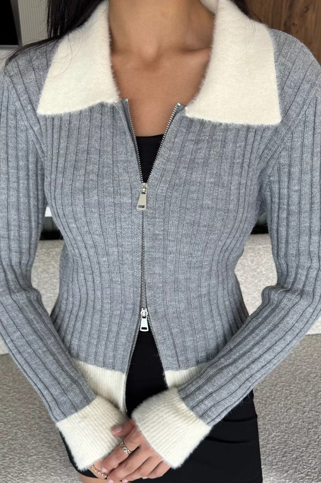 Gömlek yaka fermuarlı triko hırka, klasik ve modern detayların buluştuğu zarif bir tasarıma sahiptir. Fermuarlı ön kısmı sayesinde hem pratik hem de şık bir kullanım imkânı sunar. Gömlek yaka detayı, hırkaya sofistike bir hava katarak günlük kombinlerden ofis şıklığına kadar geniş bir kullanım alanı sağlar.