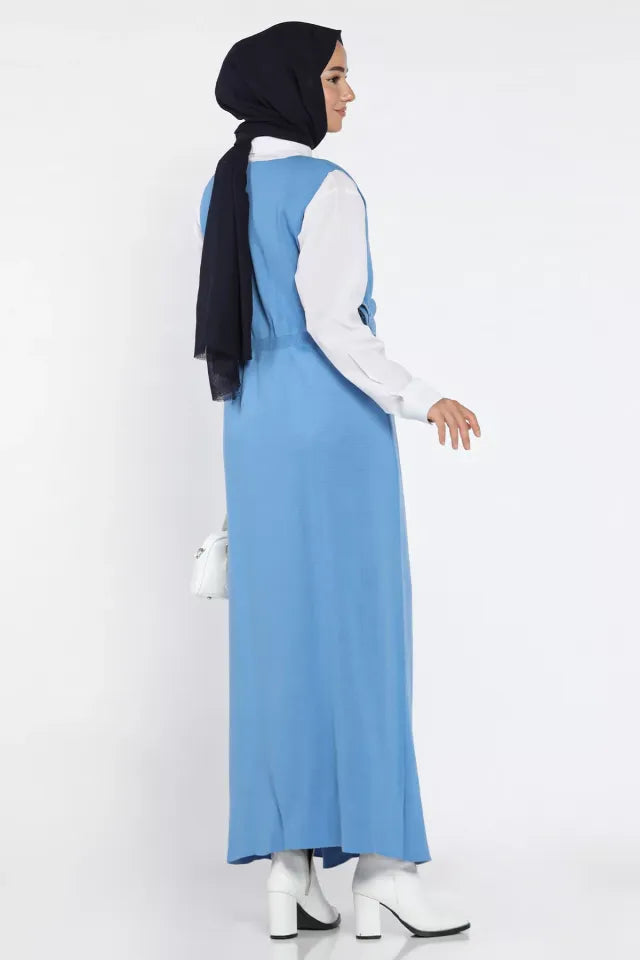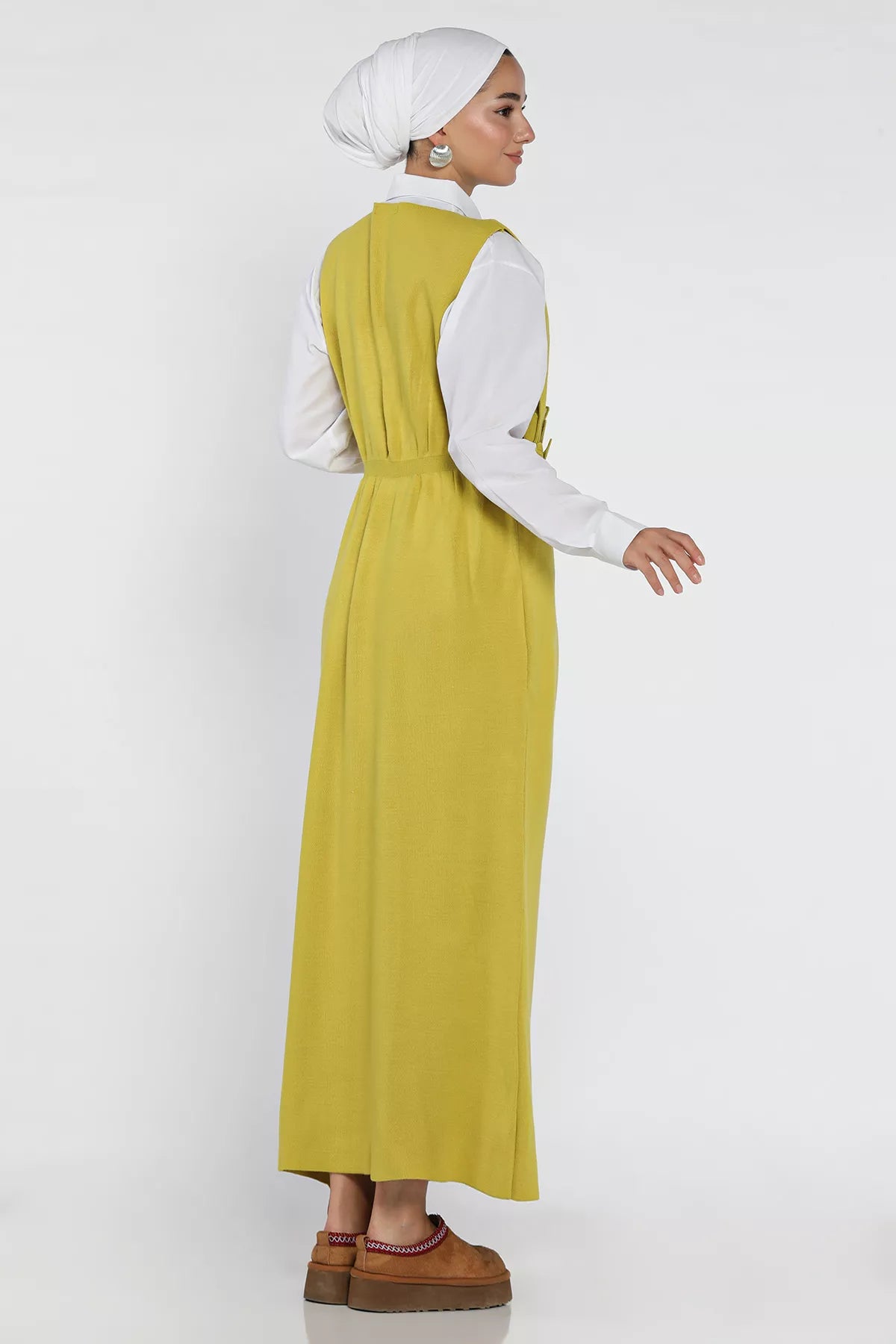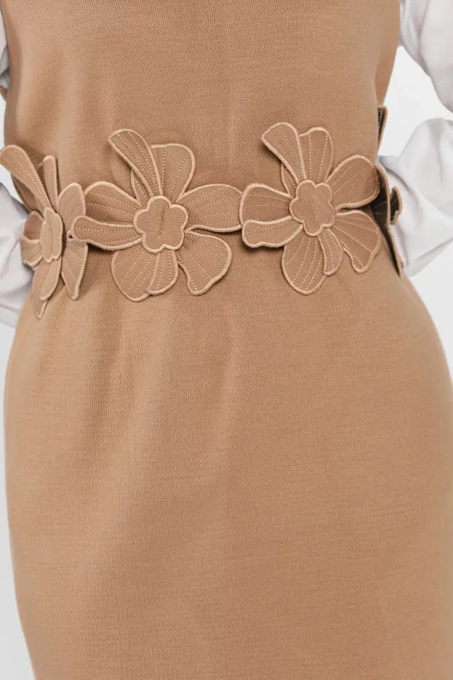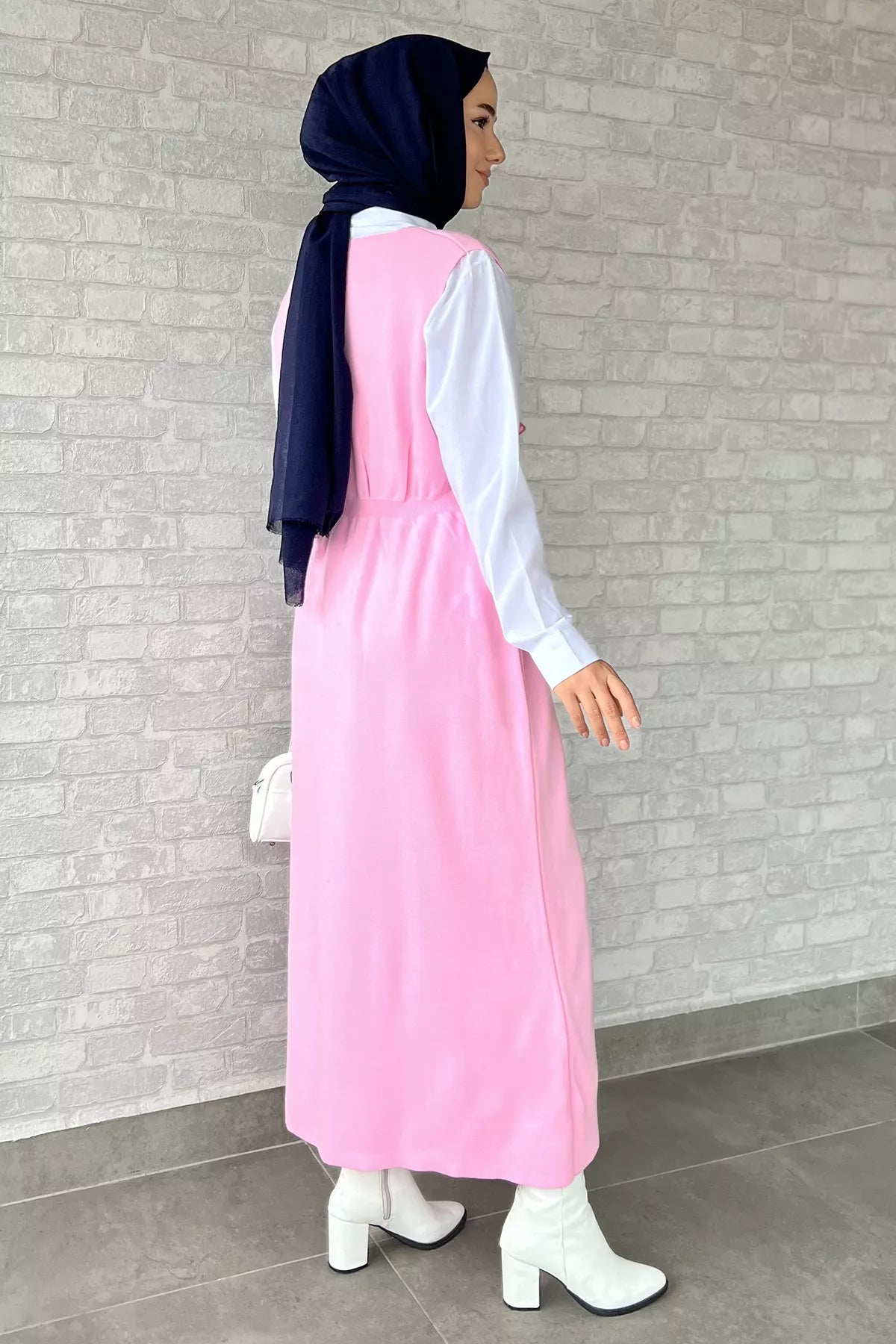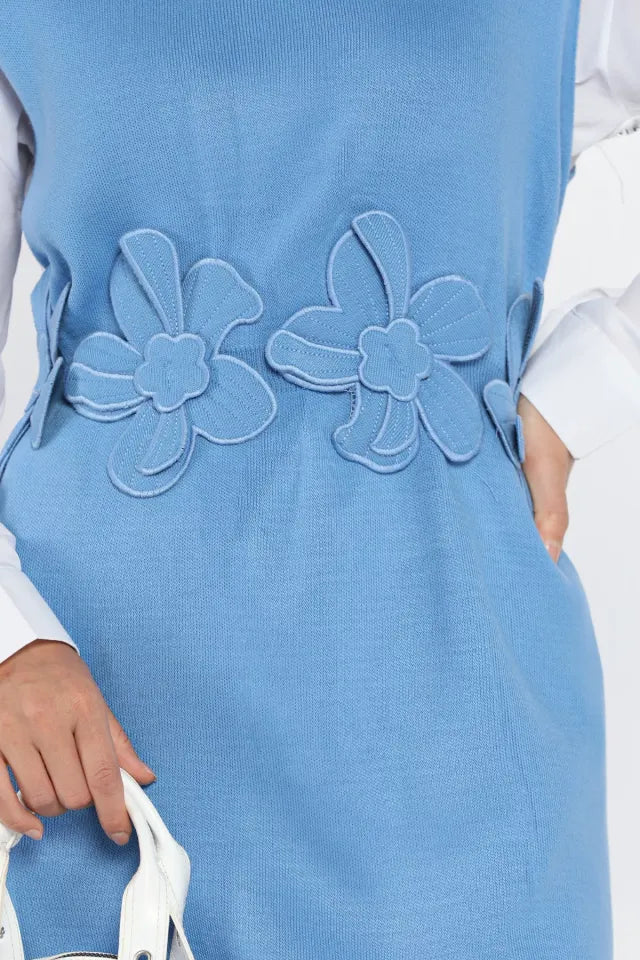 Gül Figürlü Triko Elbise Gömlek Tesettür İkili Takım