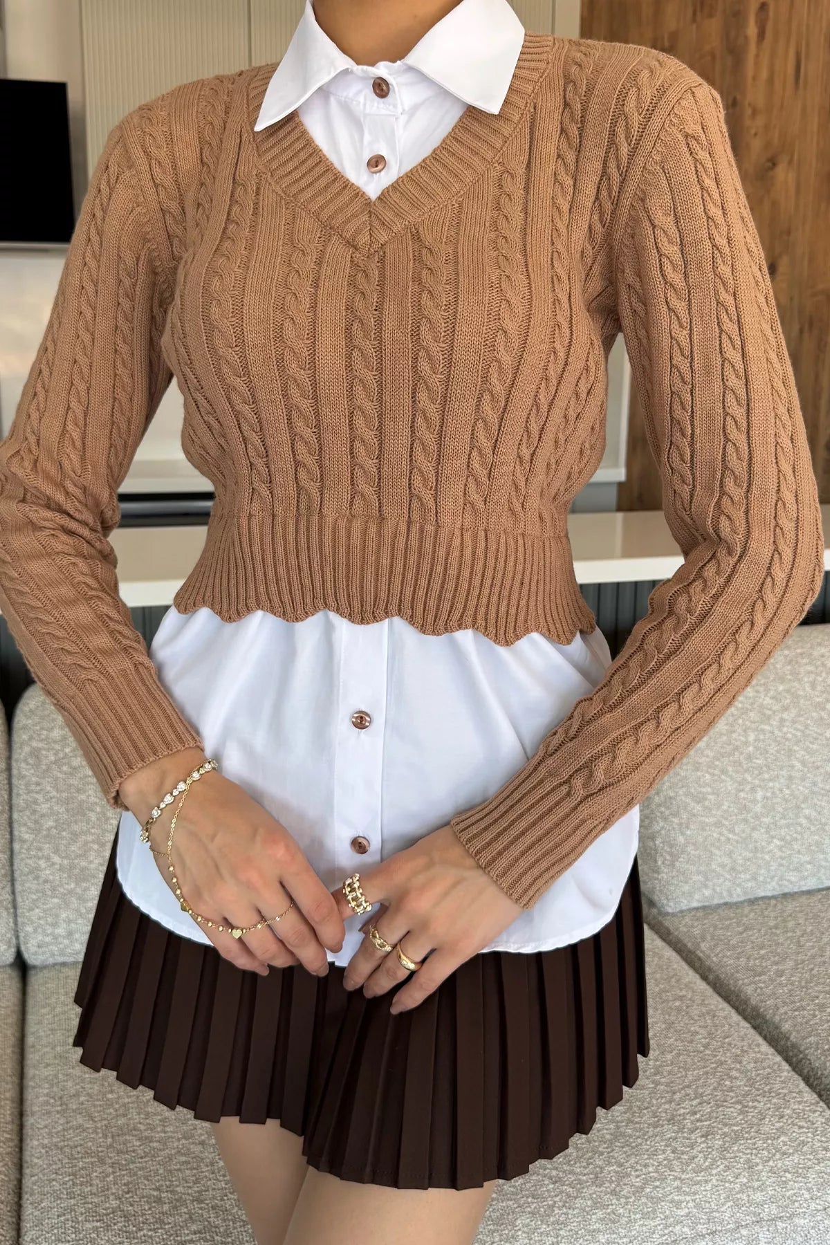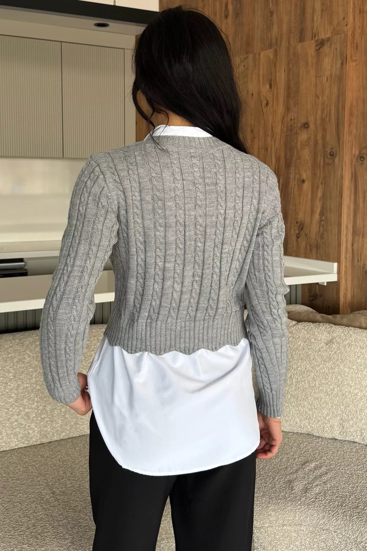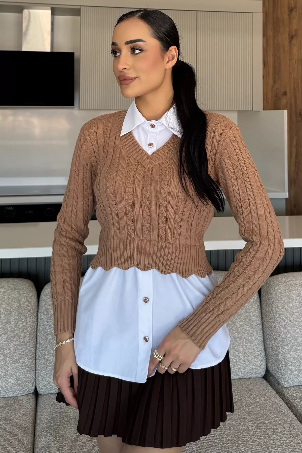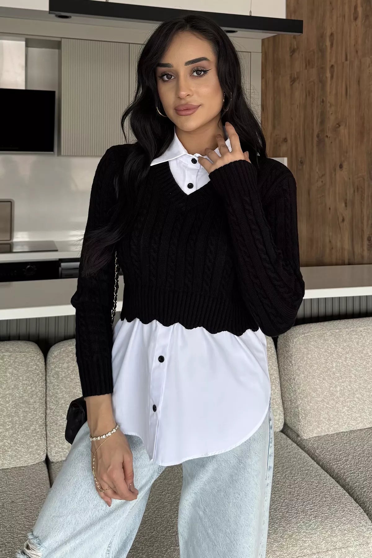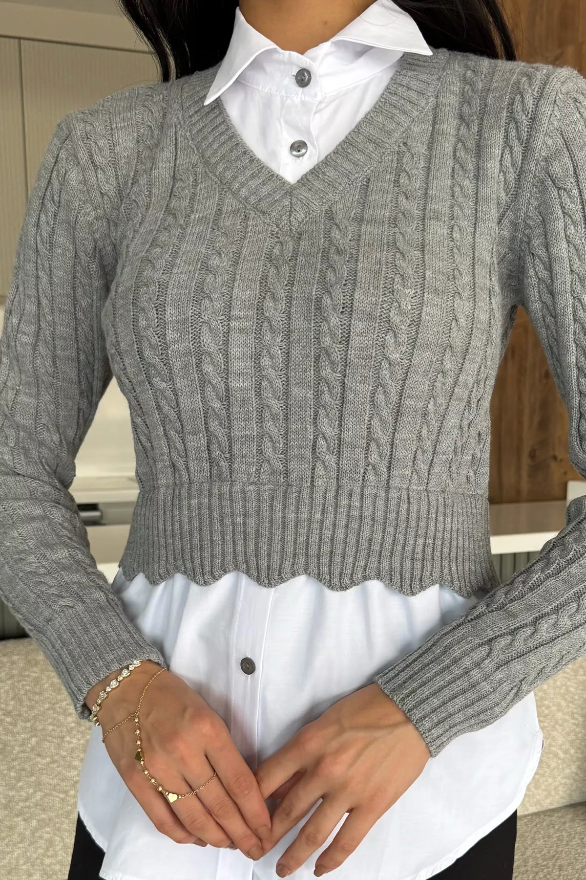 Kadın Gömlek Garnili Örgü Detaylı Triko Bluz