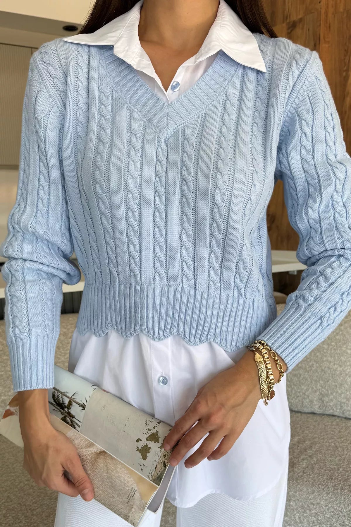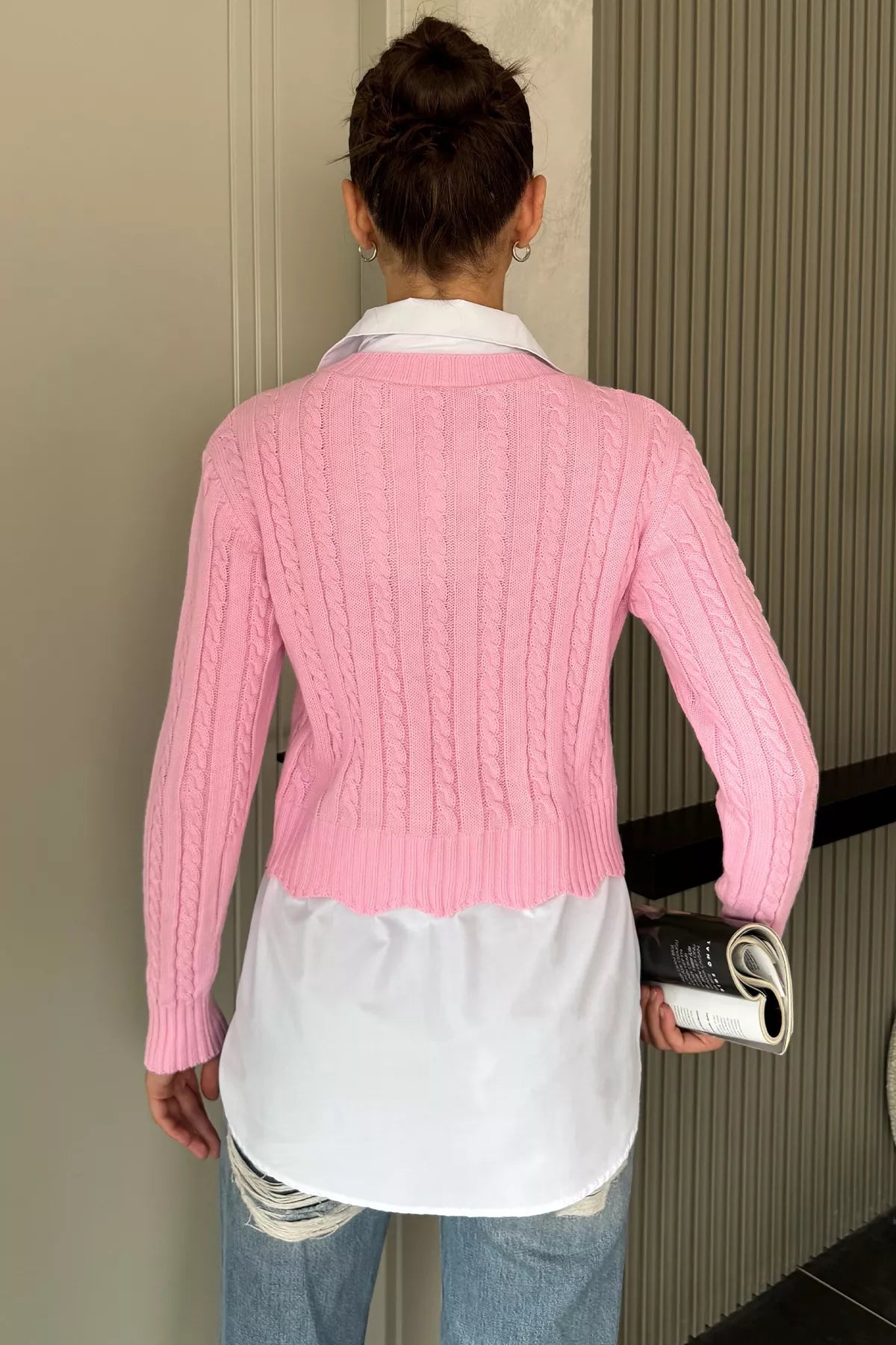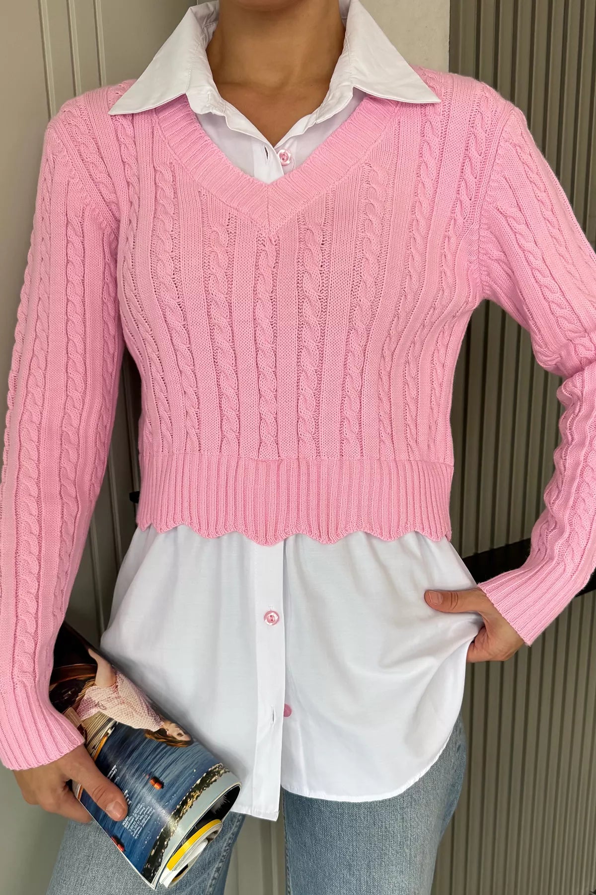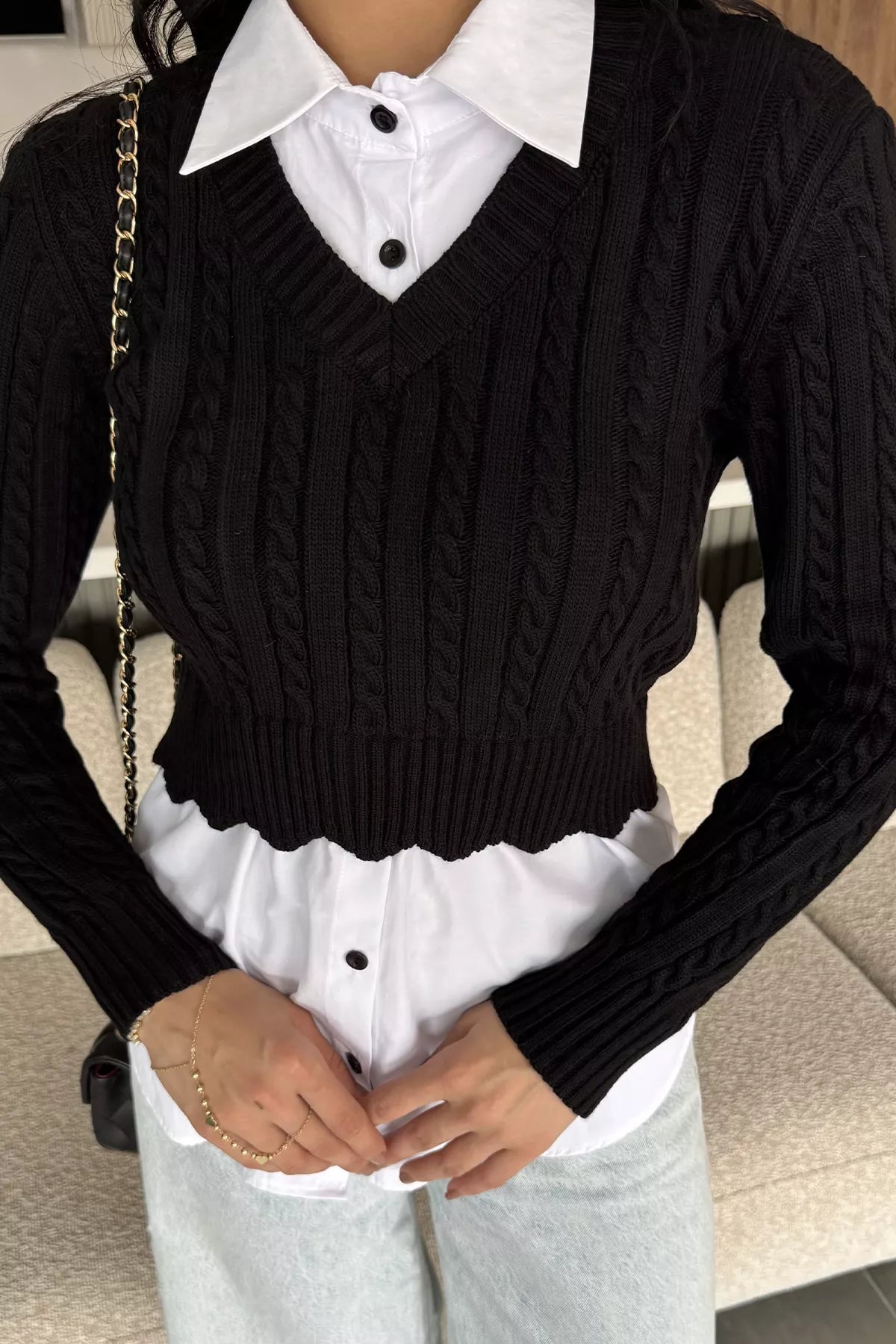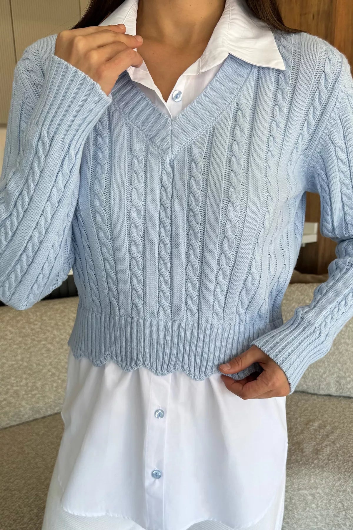 Kadın Gömlek Garnili Örgü Detaylı Triko Bluz