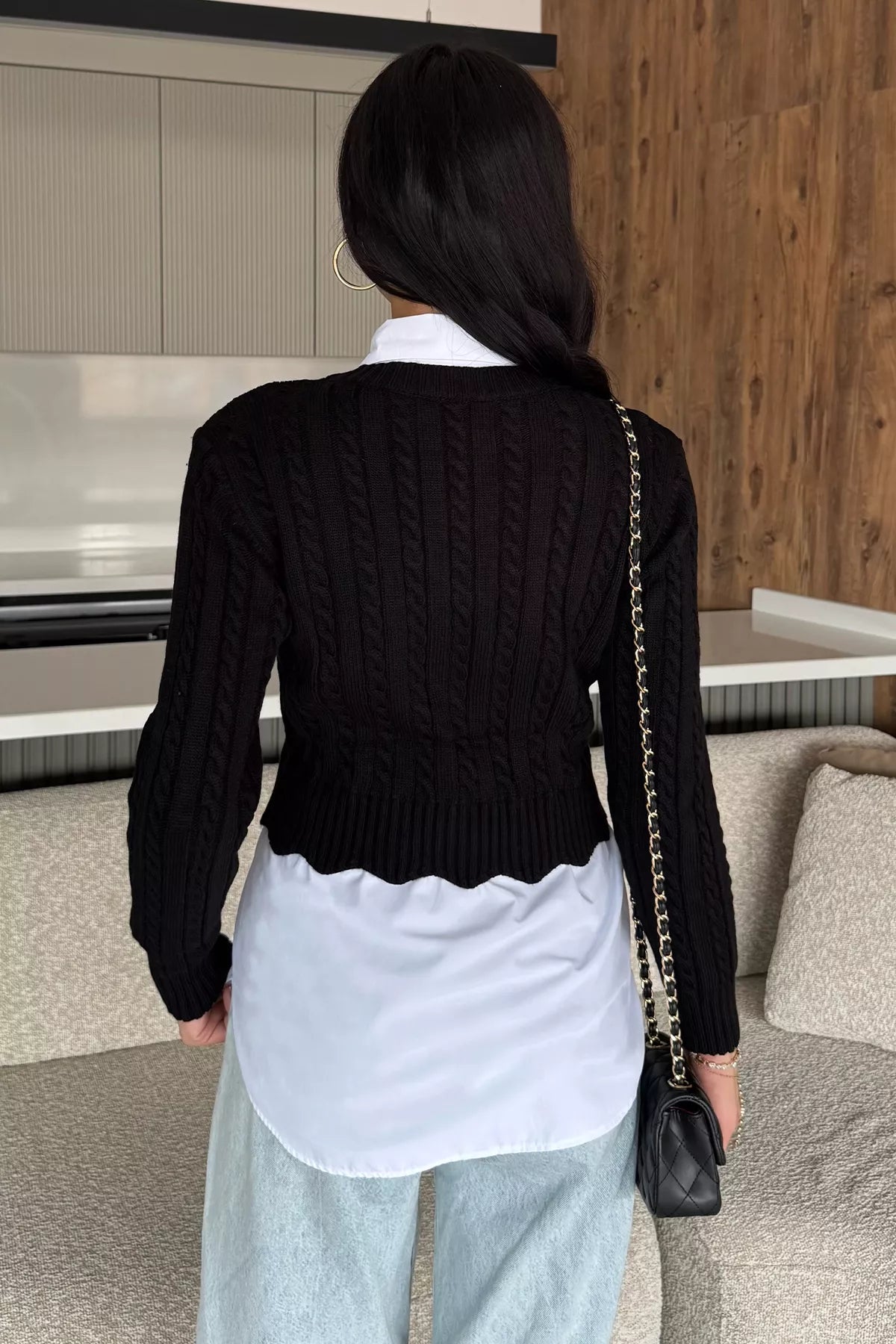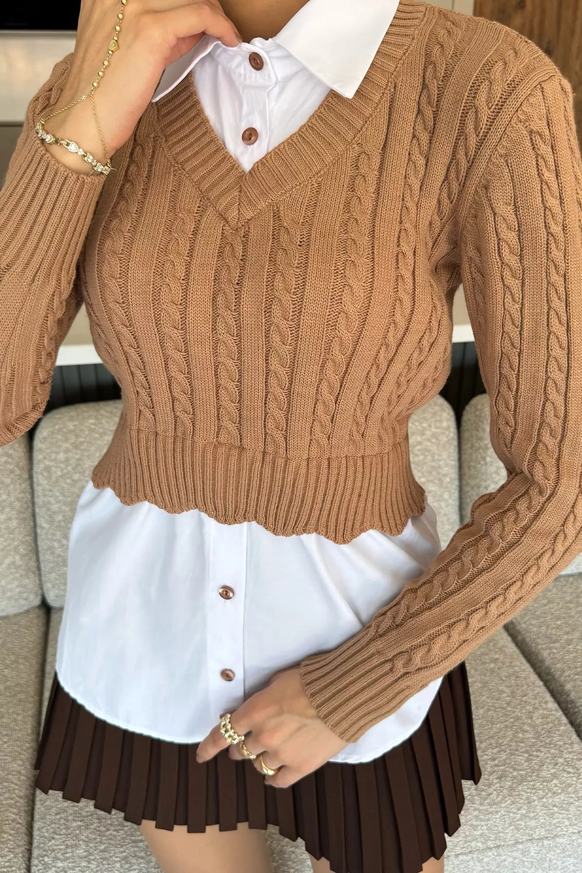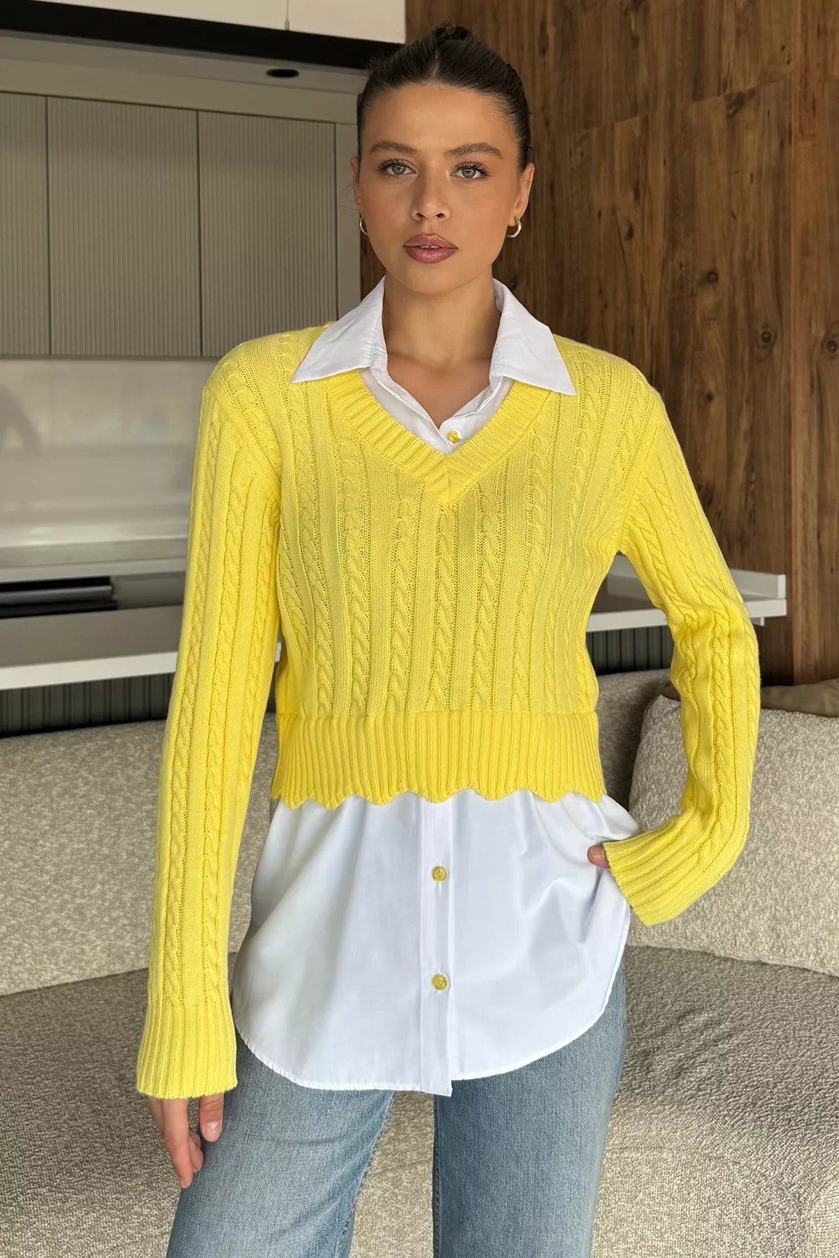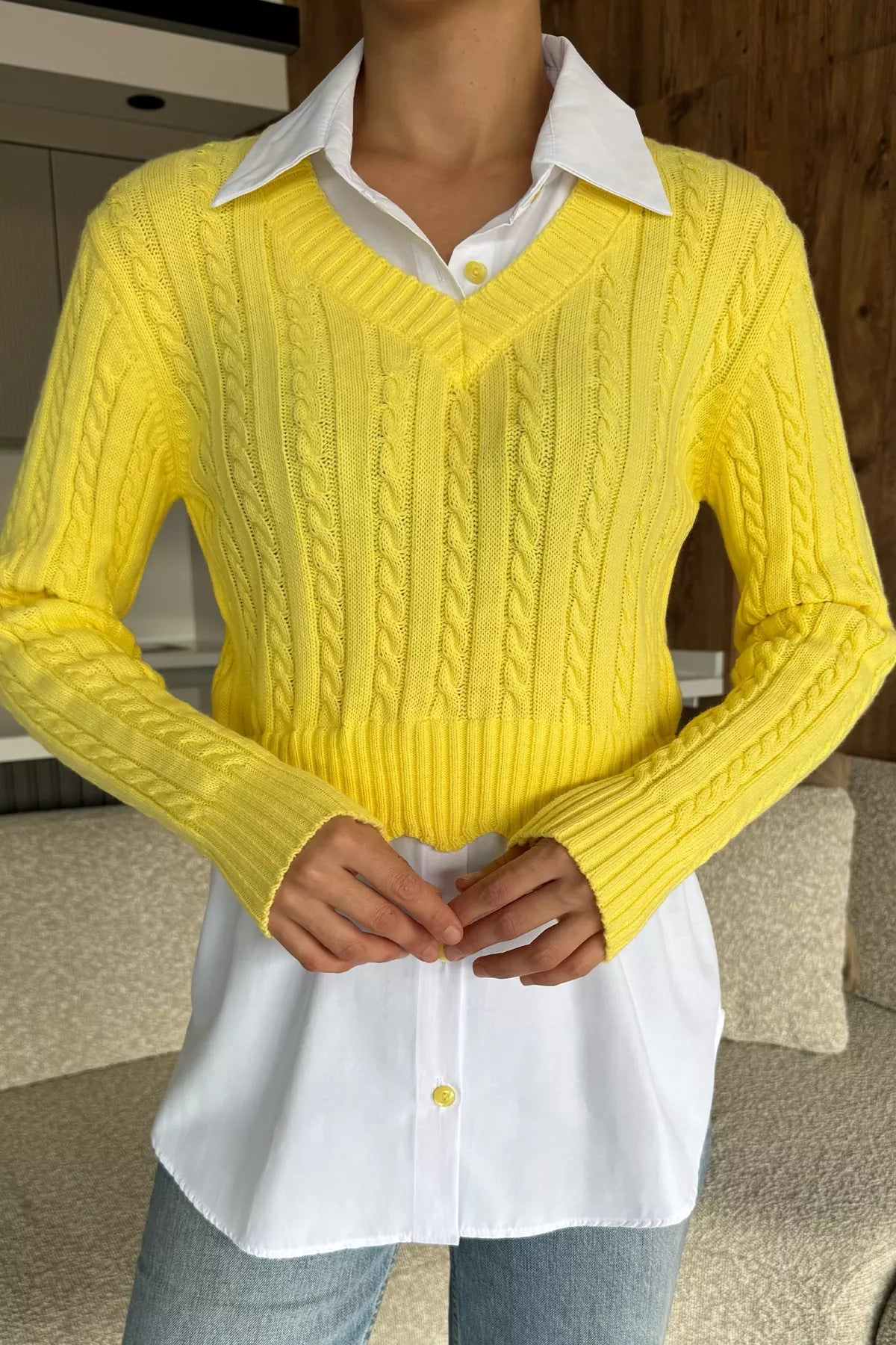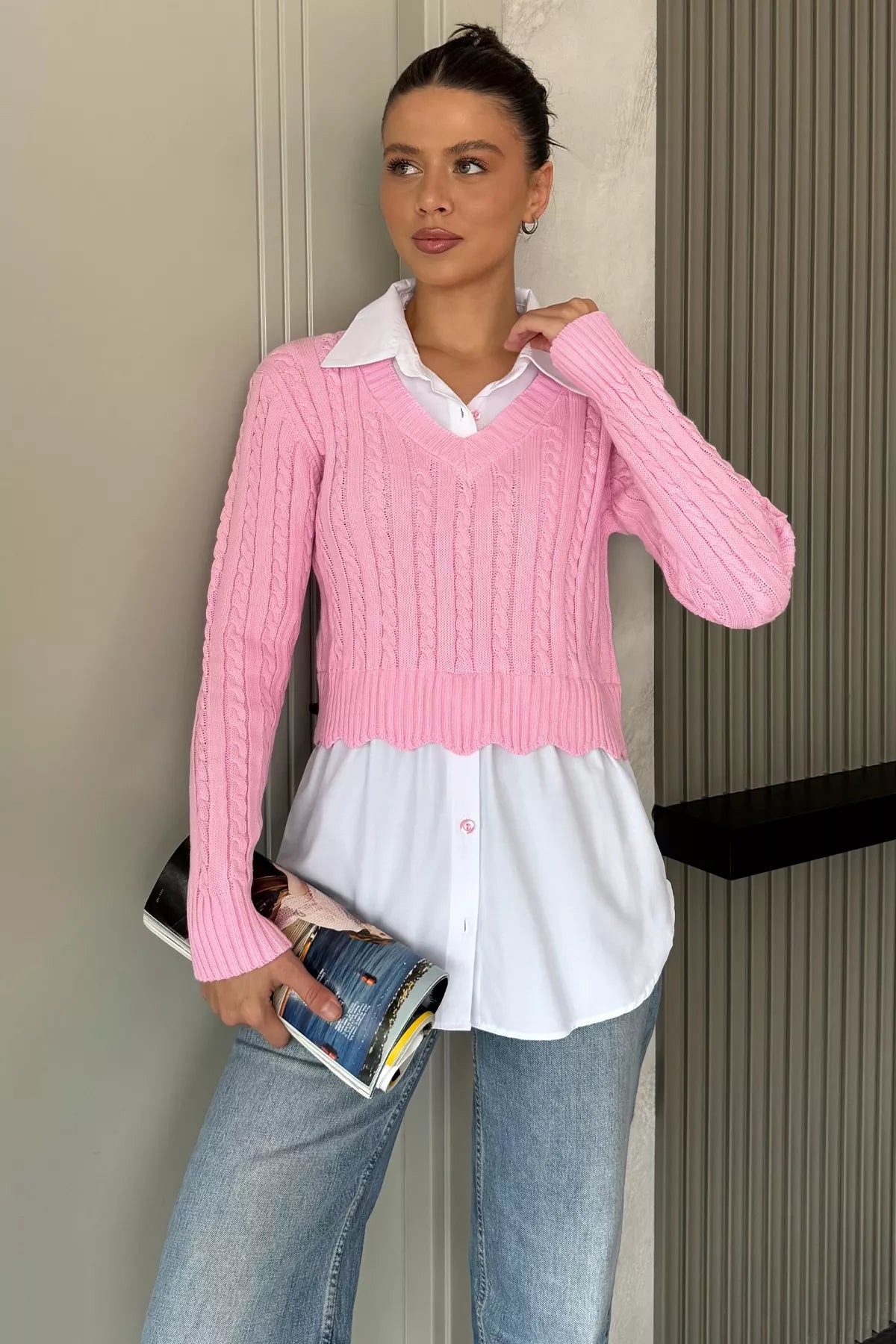 Kadın Gömlek Garnili Örgü Detaylı Triko Bluz