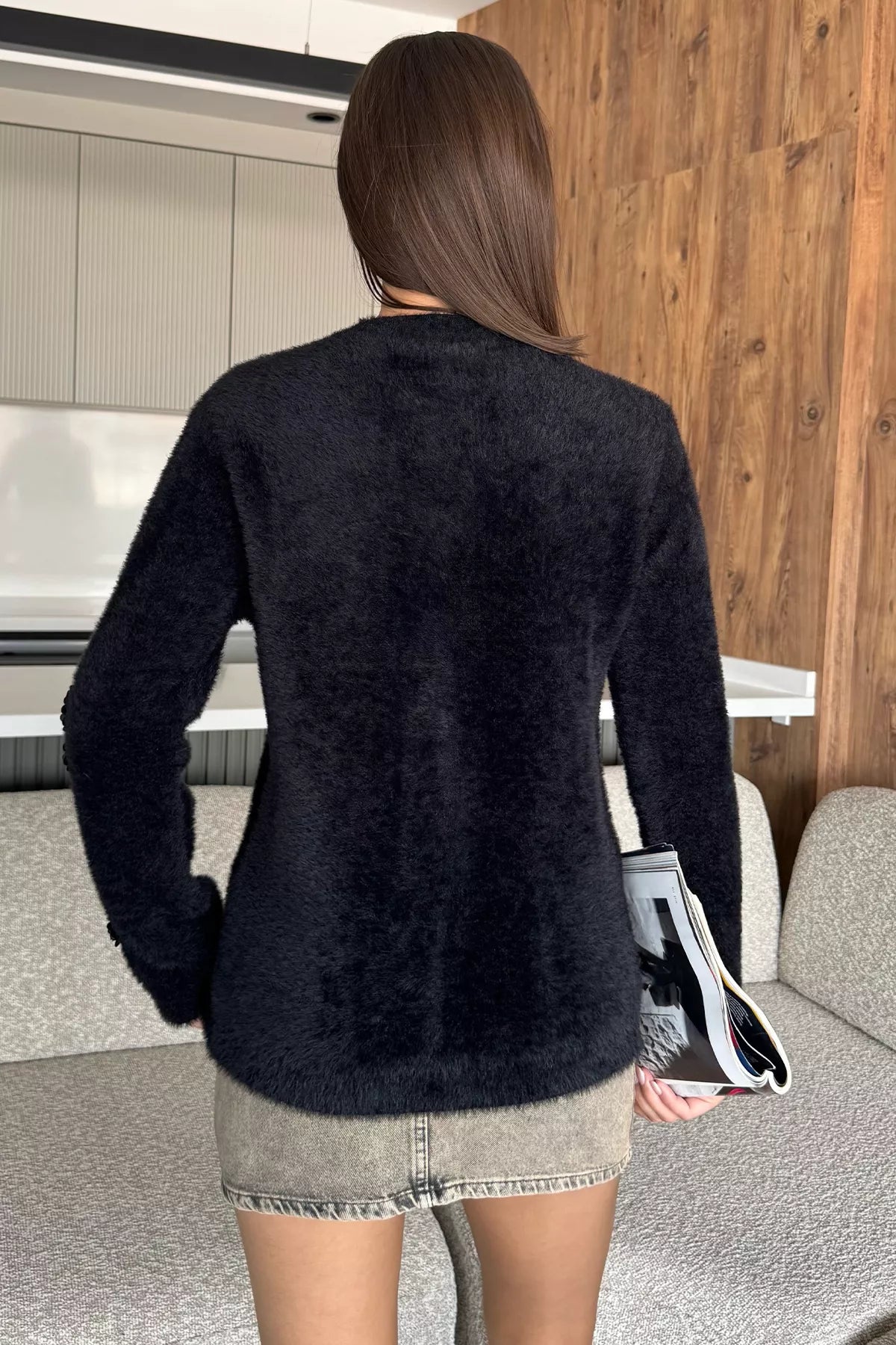 Kadın Pul İşlemeli Yumoş İplik Triko Ceket