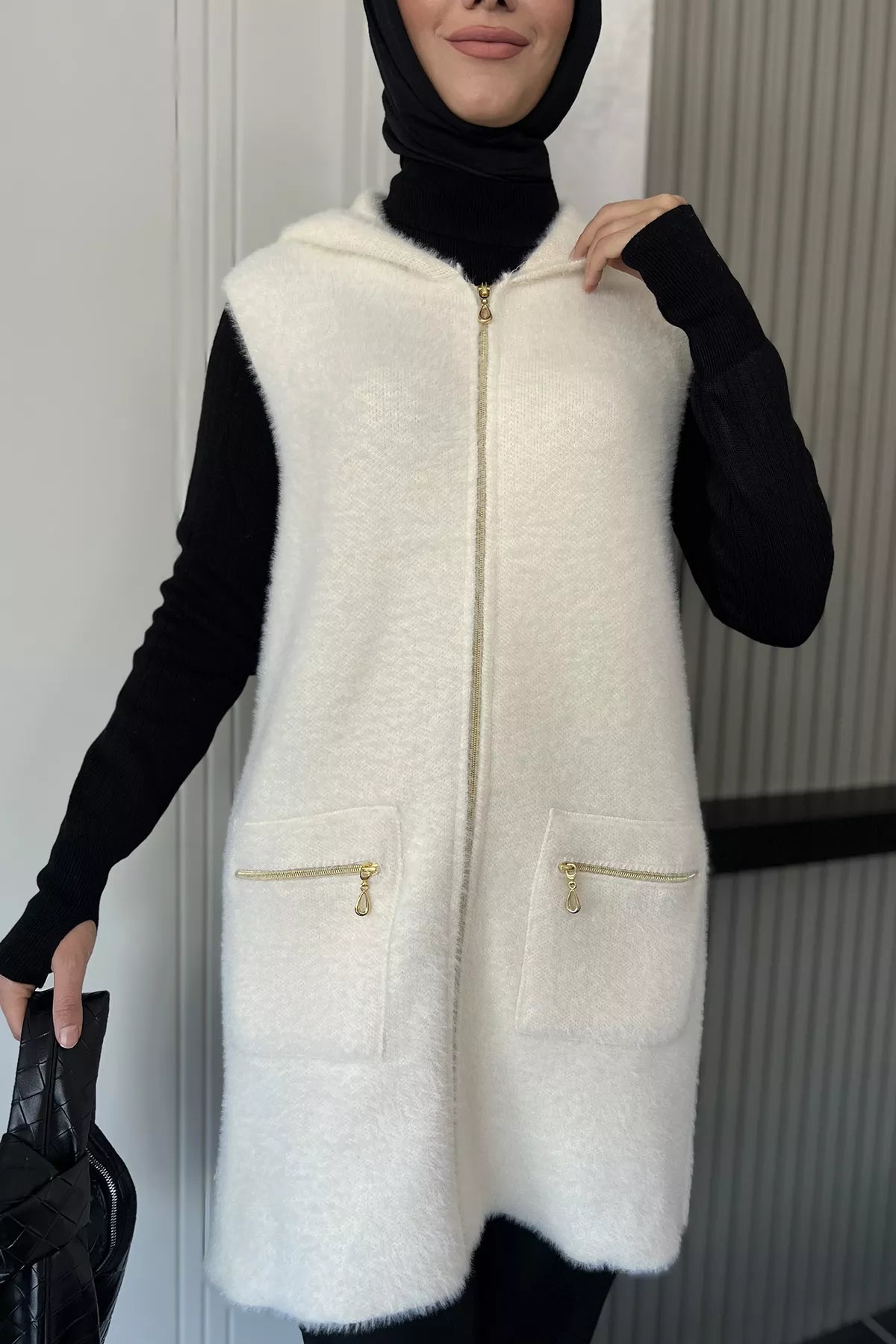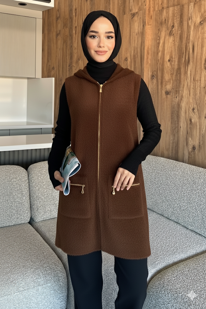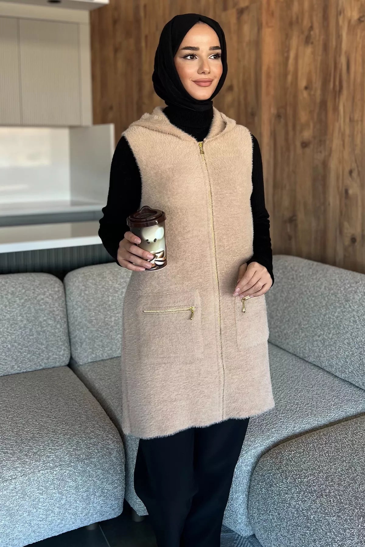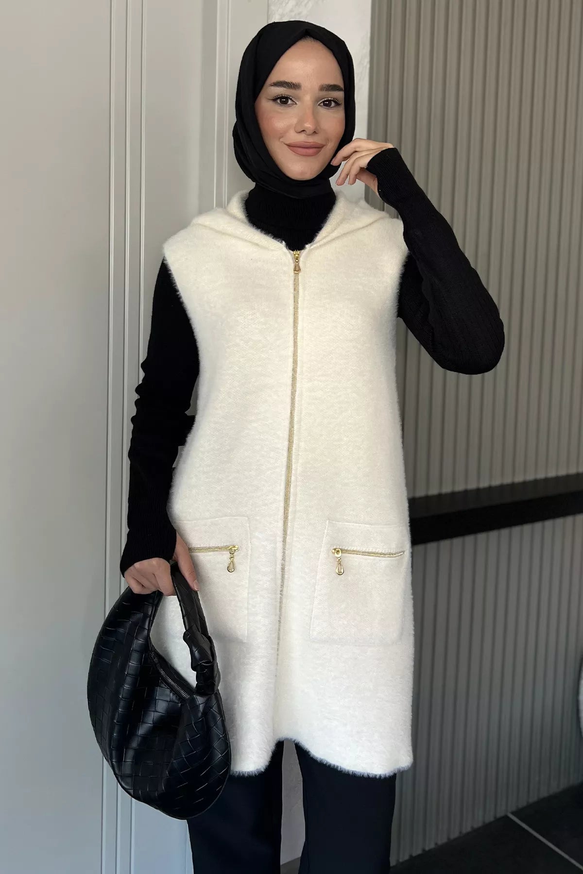Kolsuz Fermuarlı Yumoş Tesettür Triko Yelek