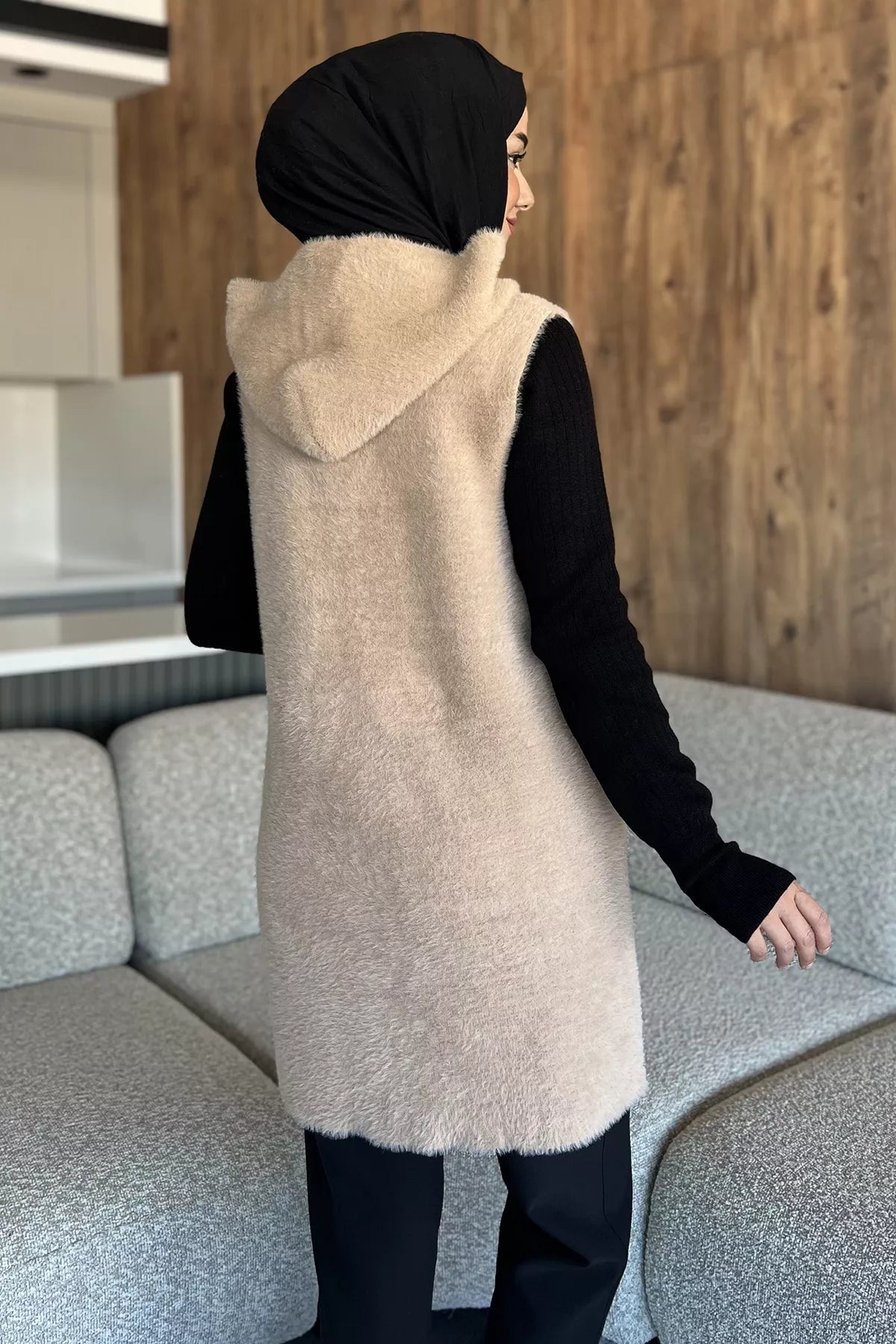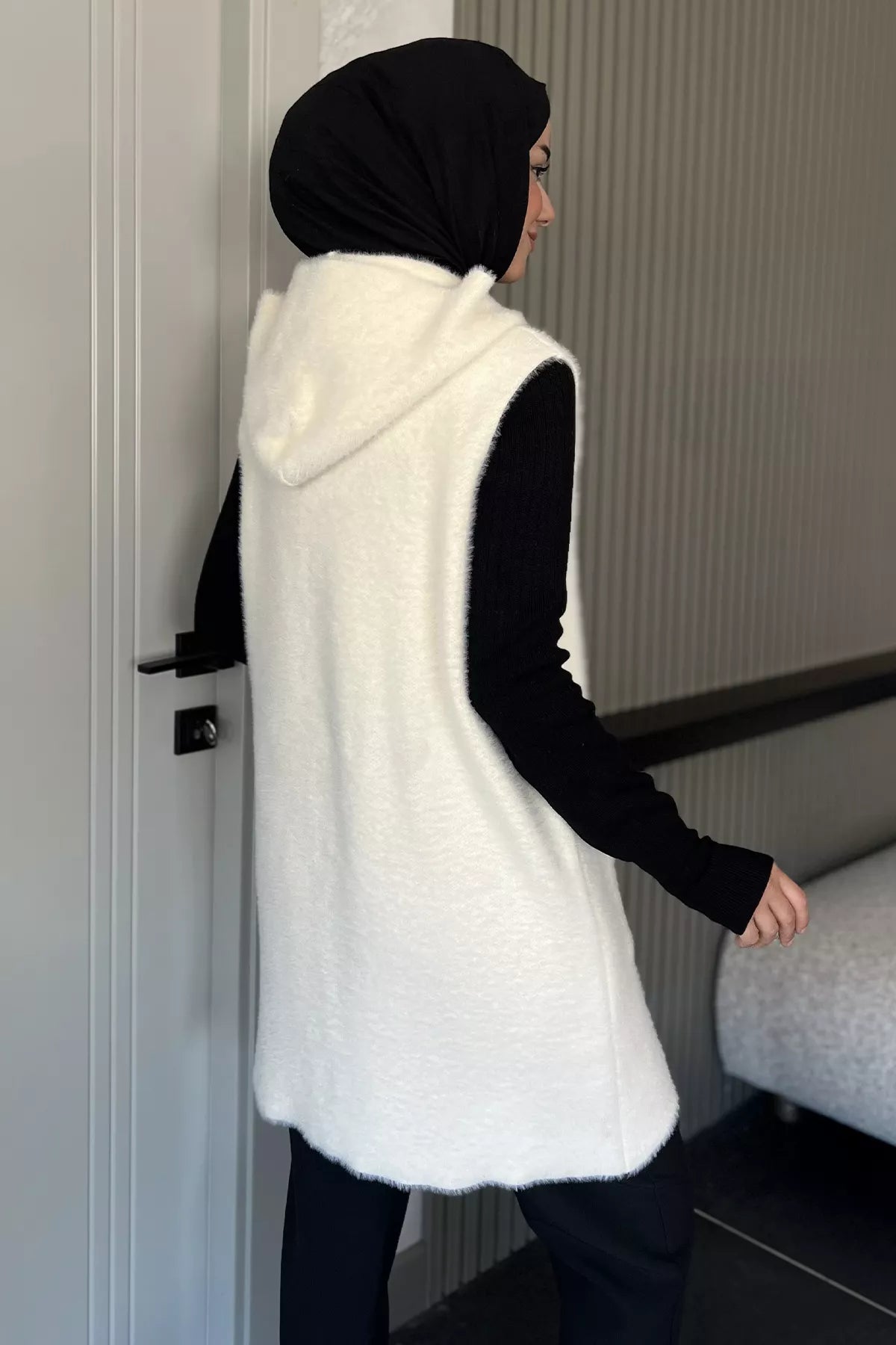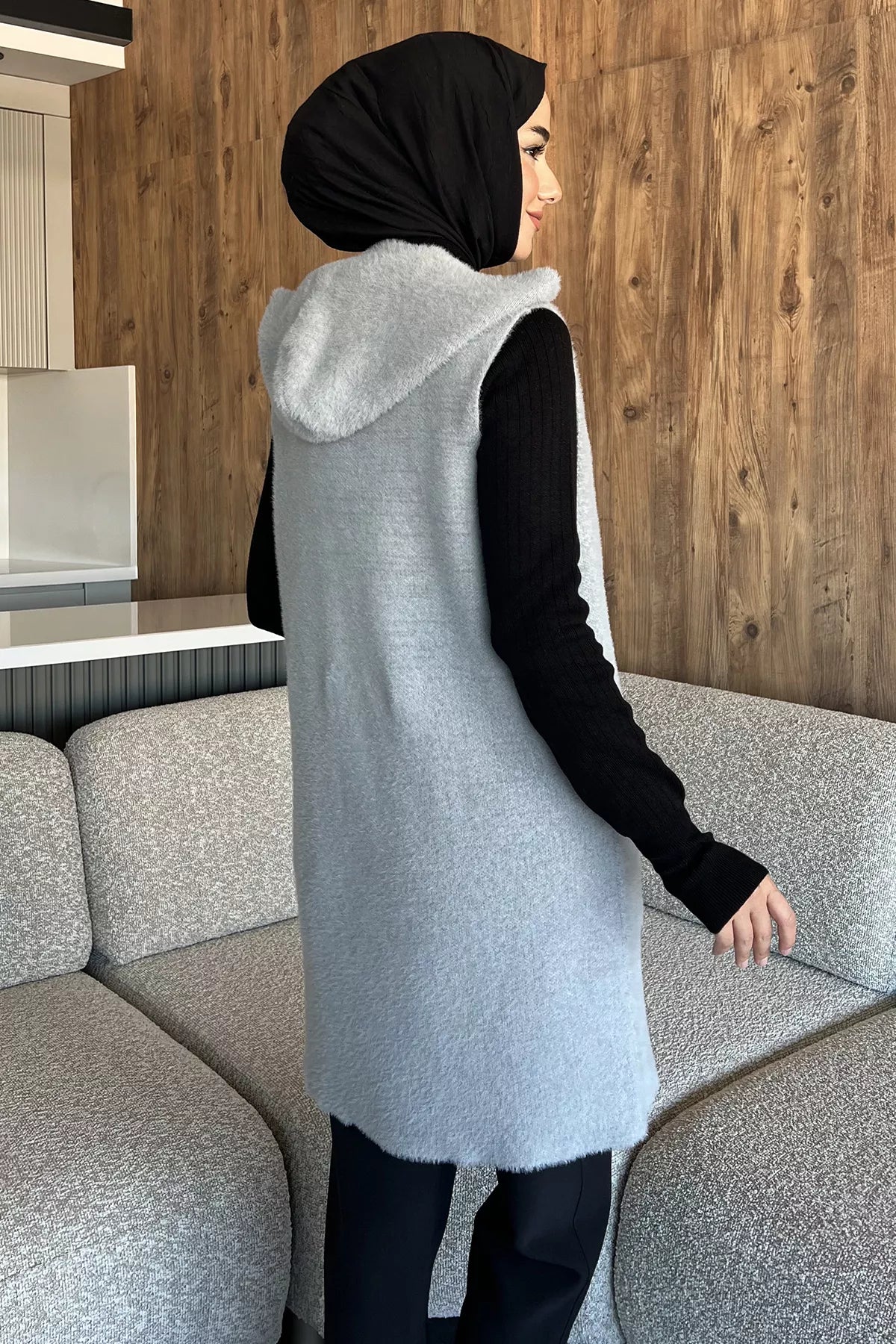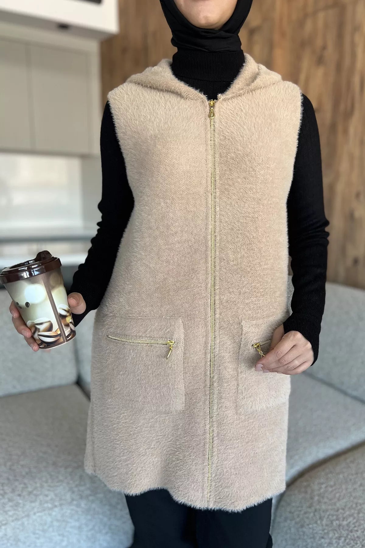 Kolsuz Fermuarlı Yumoş Tesettür Triko Yelek