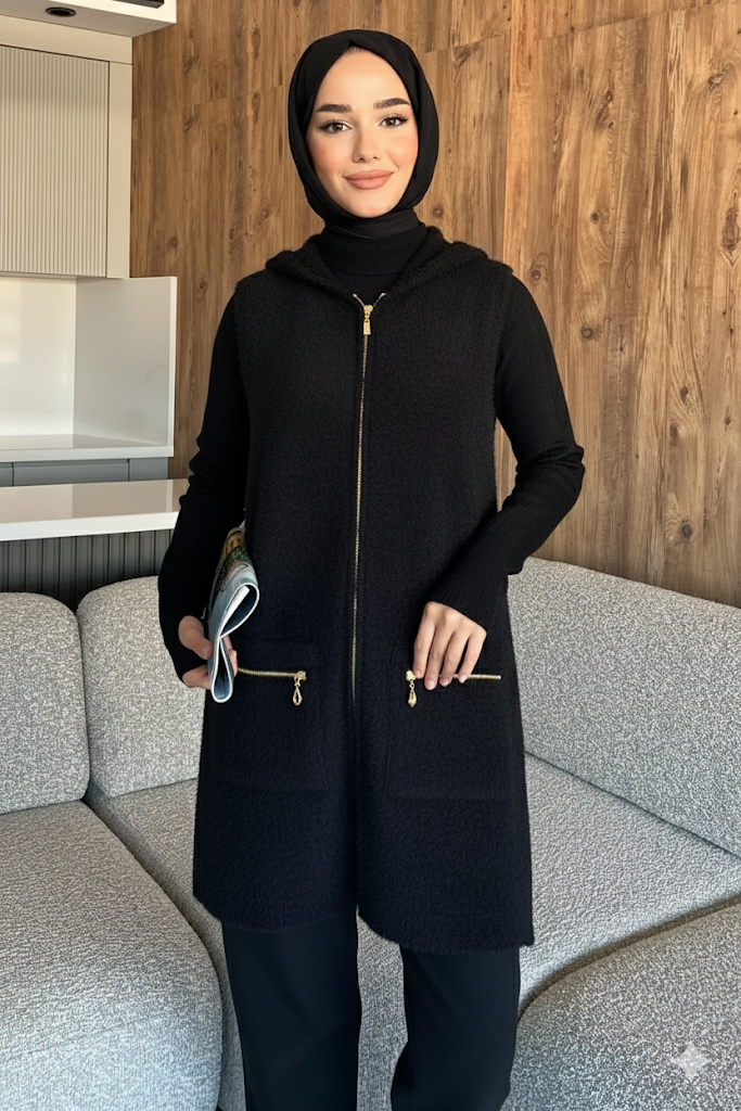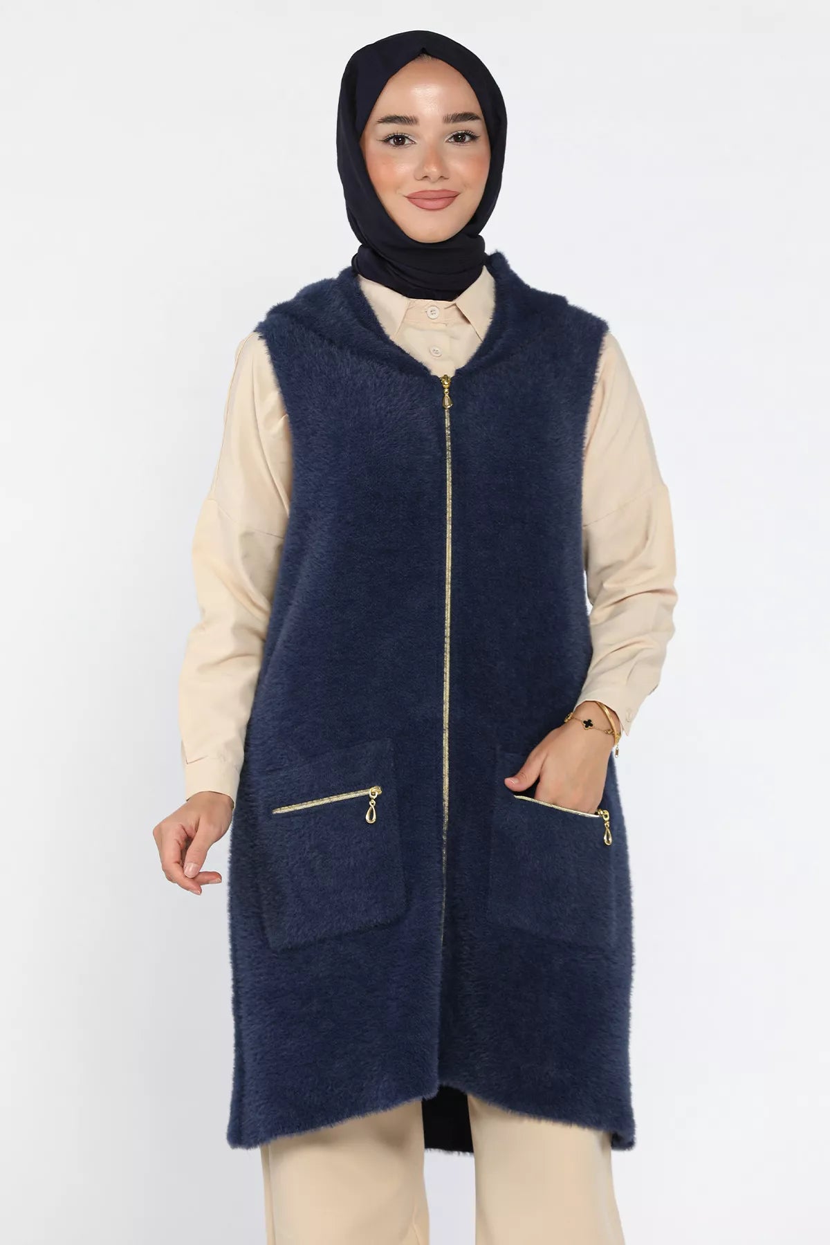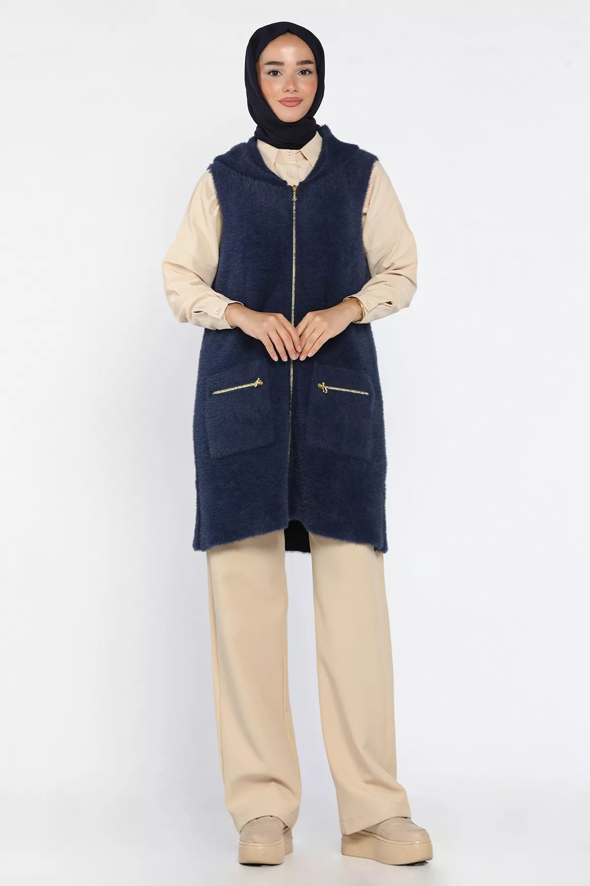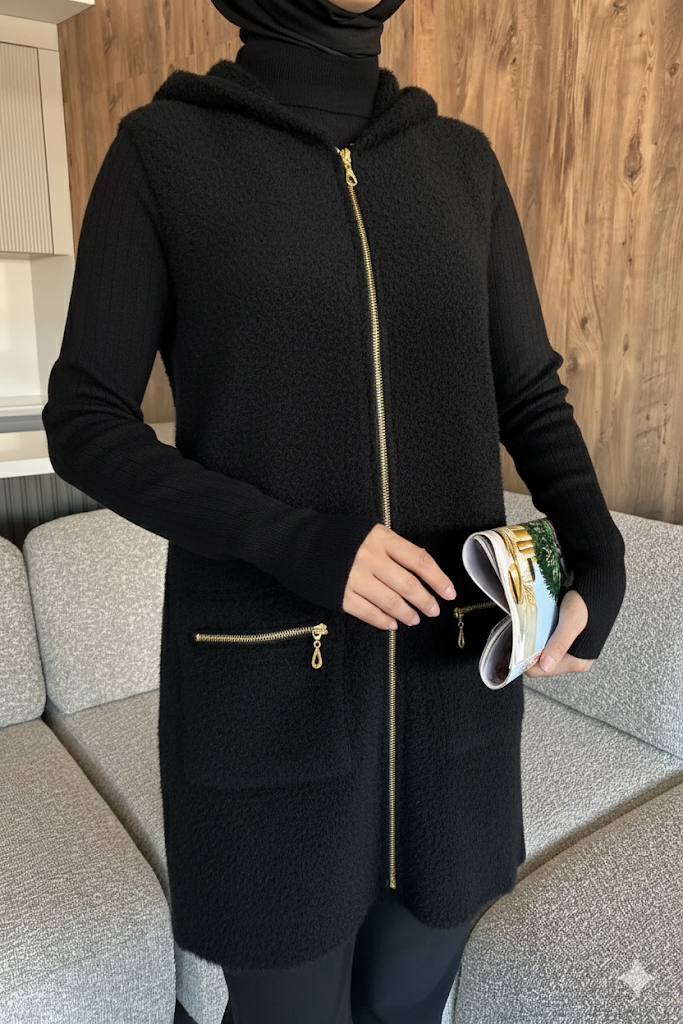 Kolsuz Fermuarlı Tesettür Triko Yelek
