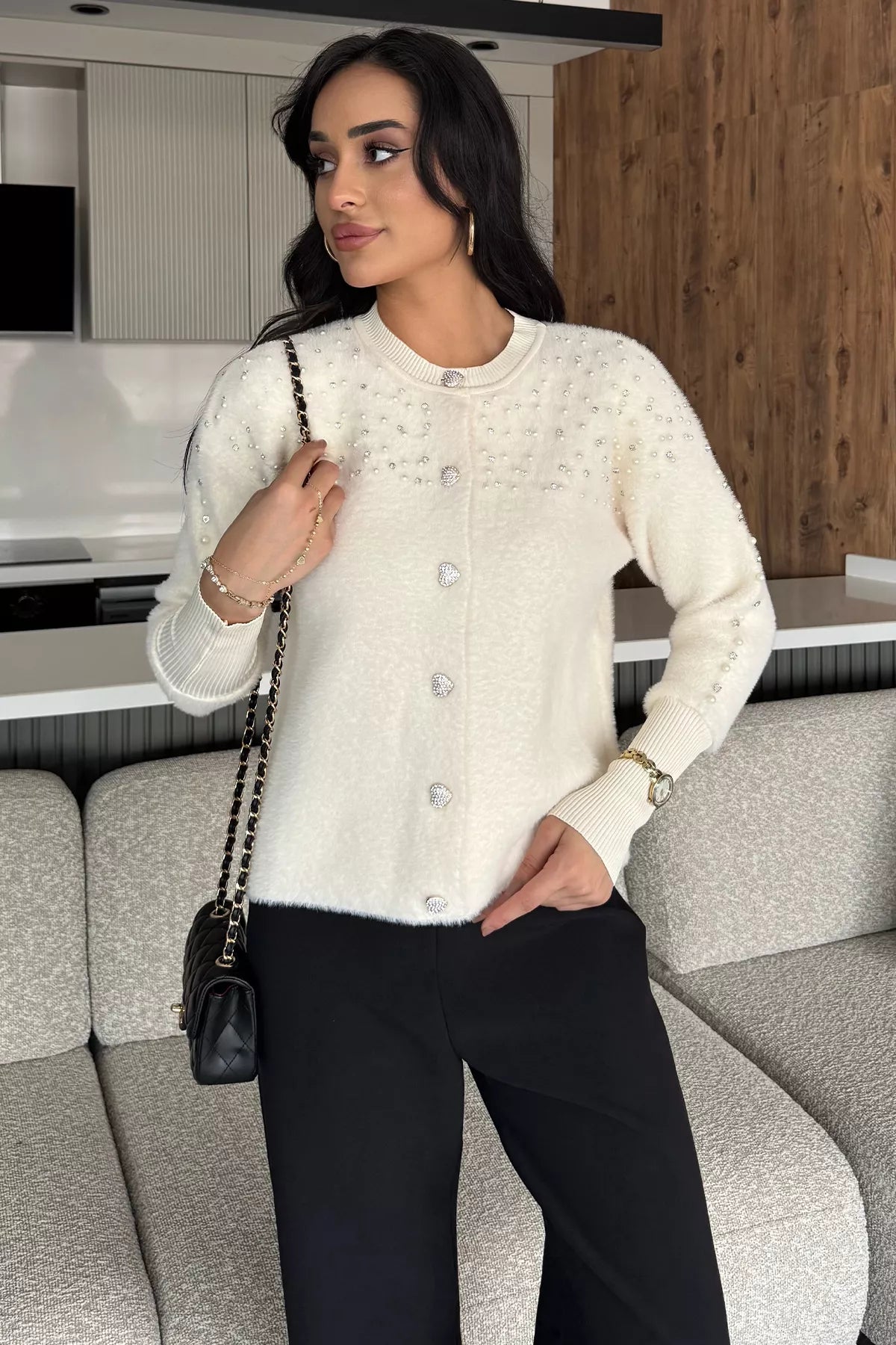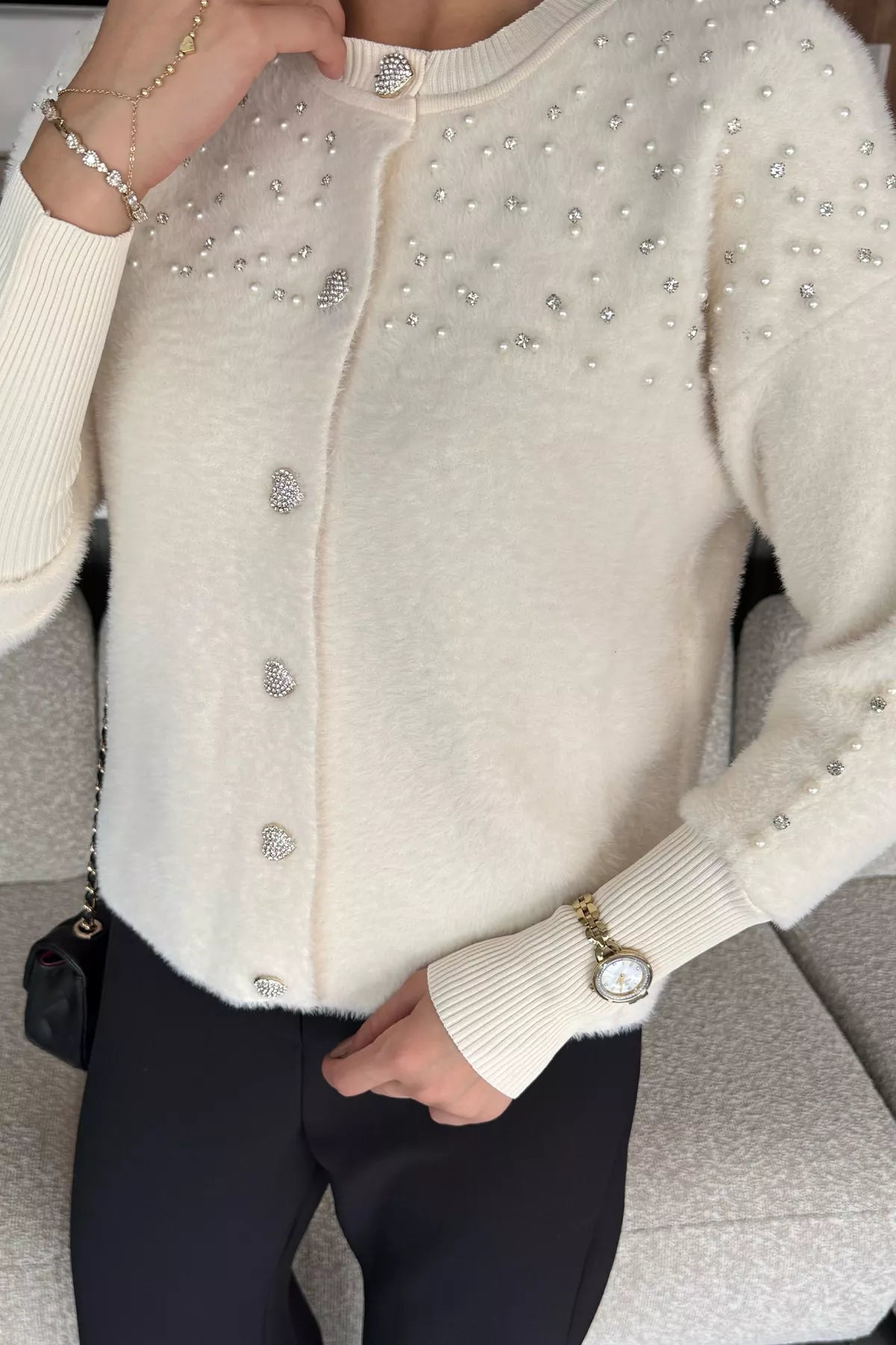 Özel günlerde zarif bir etek ya da şık bir pantolonla kombinleyerek feminen bir stil yaratabileceğiniz bu parça, günlük yaşamda jeanlerle birleştirildiğinde ise daha spor-şık bir görünüm elde etmenizi sağlıyor. Zamansız tasarımı ve parıltılı detayları sayesinde uzun yıllar gardırobunuzun vazgeçilmez parçalarından biri olacak. Her mevsim stilinize uyum sağlayacak bu triko ceket, hem şıklığı hem de rahatlığı bir arada arayanlar için ideal bir seçenek sunuyor.