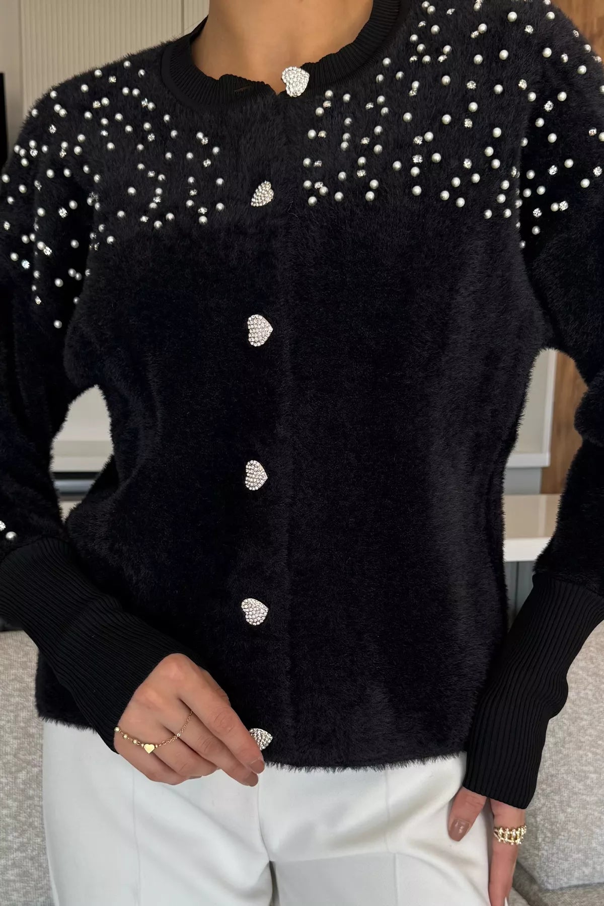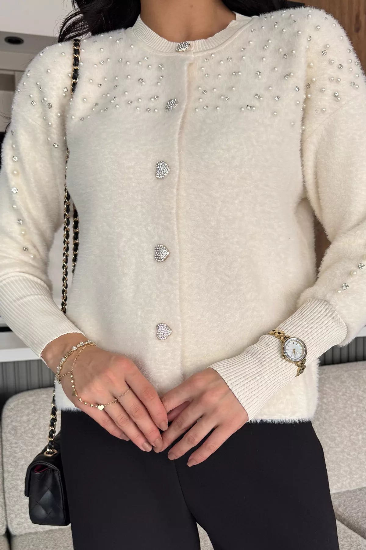 Zarif ve modern tasarımıyla öne çıkan omuz taşlı triko ceket, şıklığınıza sofistike bir dokunuş kazandırıyor. Omuzlardan başlayarak kollar boyunca uzanan taş detayları, ışığı yansıtarak göz alıcı bir ışıltı oluşturuyor. Ön kısmında yer alan düğme kapama detayı, ürüne hem klasik hem de kullanışlı bir hava katıyor. Yumuşacık dokusu sayesinde gün boyu konfor sunarken, şıklığınızdan da ödün vermeden kombinlerinizi tamamlamanıza yardımcı oluyor.