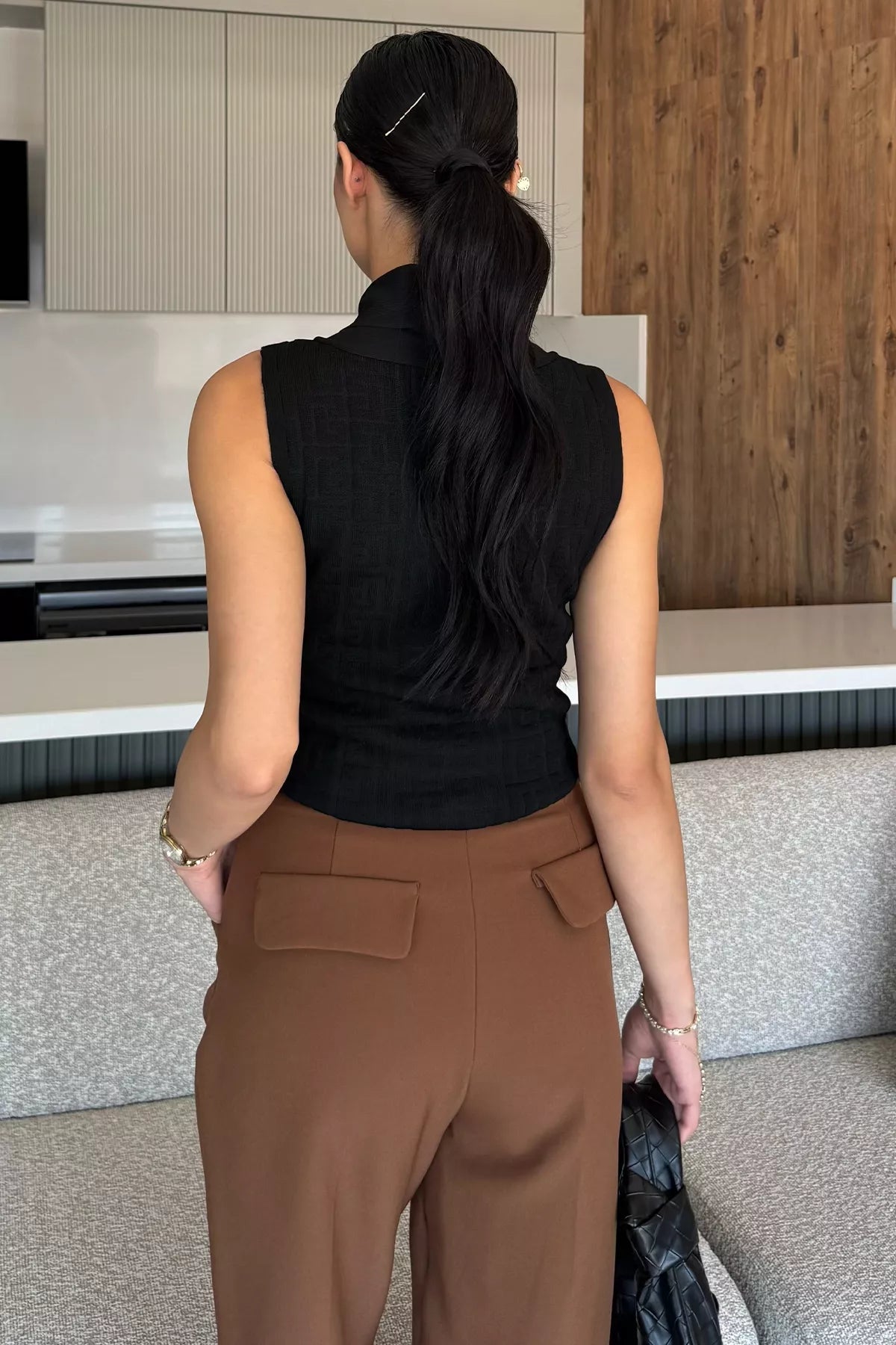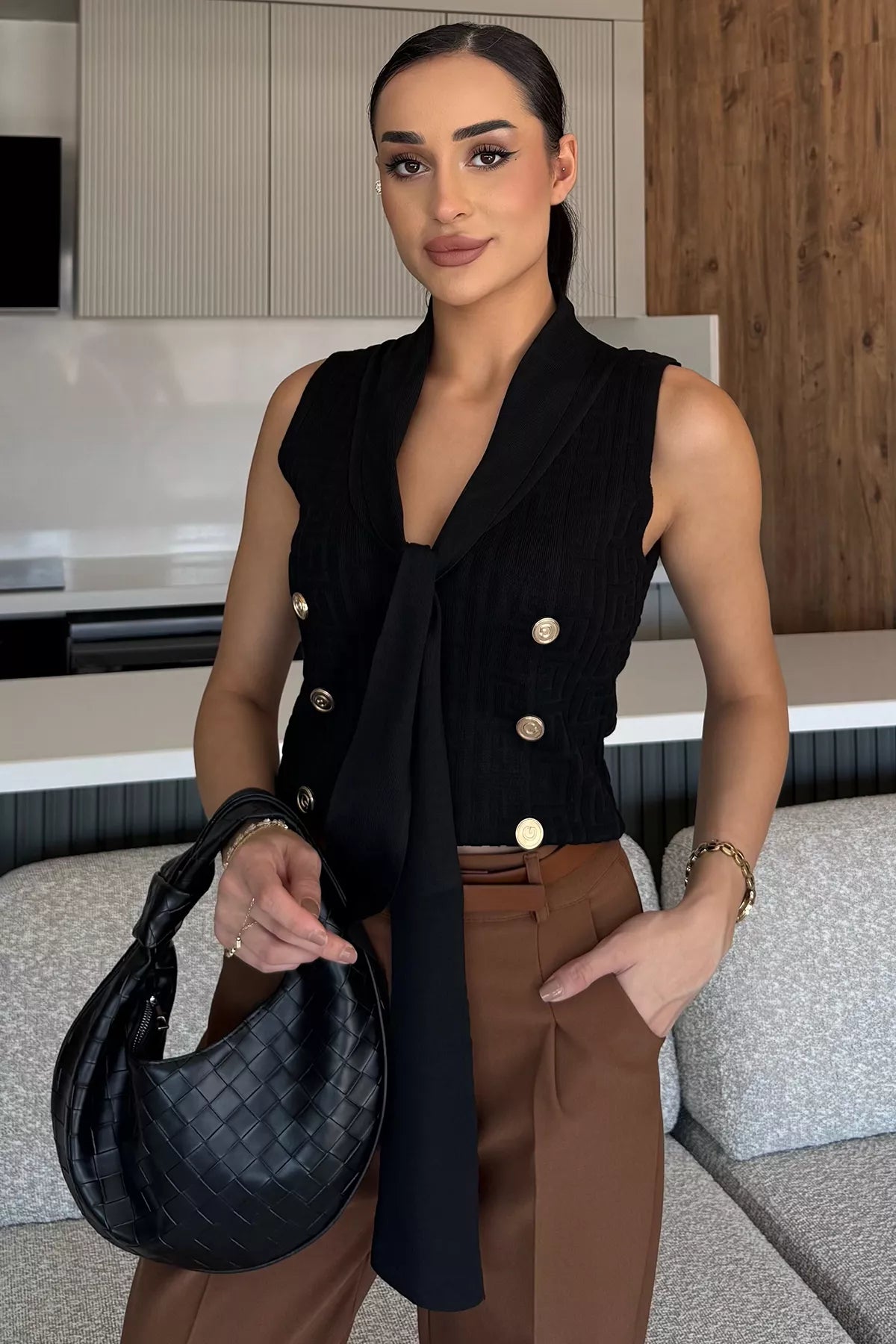 Zarif ve modern tasarımıyla öne çıkan ön bağlamalı triko yelek, hem şıklığı hem de rahatlığı bir arada sunuyor. Ön kısmındaki bağlama detayıyla dikkat çeken bu parça, klasik yelek formuna farklı ve sofistike bir hava katıyor. Çift sıra düğme tasarımıyla estetik görünüm kazanan yelek, triko dokusu sayesinde gün boyu konfor sağlıyor. İnce işçilikle hazırlanan dokusu, hem gündelik hem de özel kombinlerde stilinize şıklık katıyor.