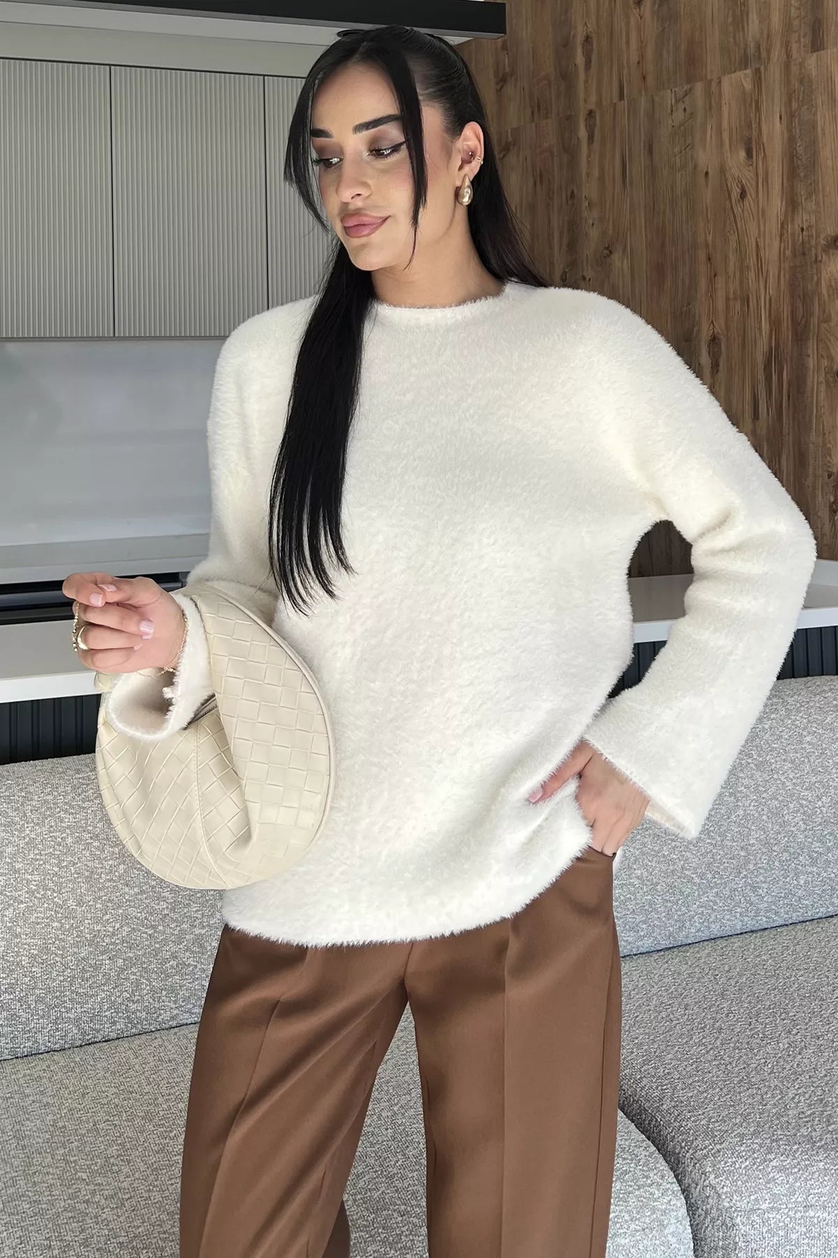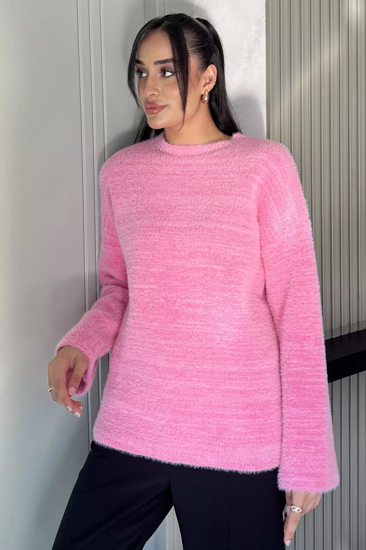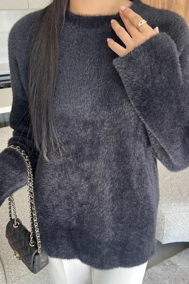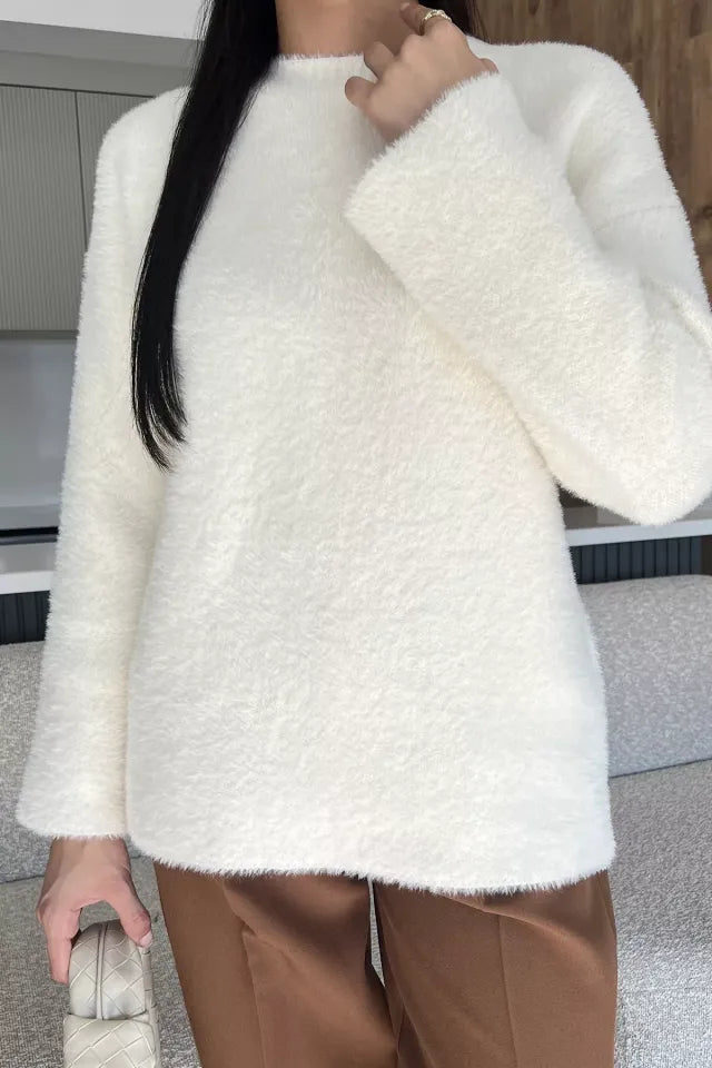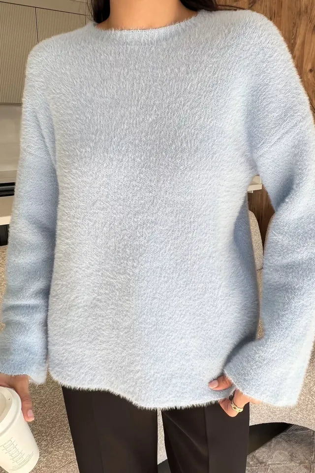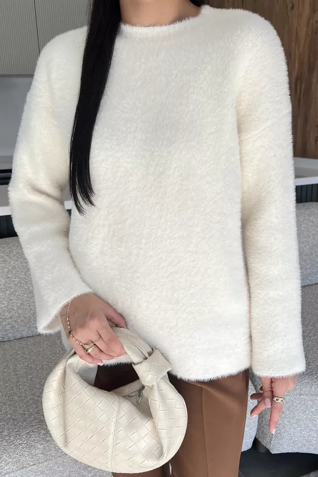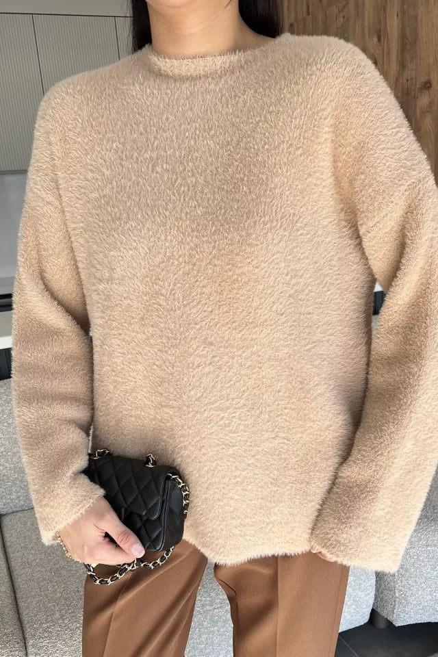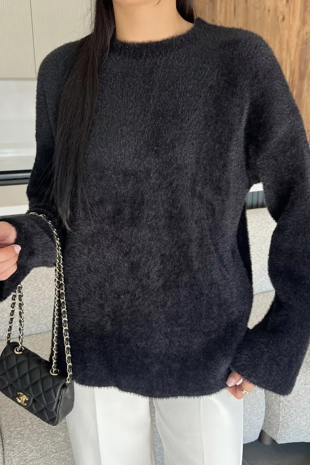 Sakallı triko dokusu, kazak modeline hem zarif hem de modern bir hava katarken; uzun kollu tasarımı soğuk günlerde ekstra koruma sunar. Günlük hayatta jean pantolonlarla rahat bir kombin oluşturabilir, etek veya klasik parçalarla ise şık bir görünüm elde edebilirsiniz.
