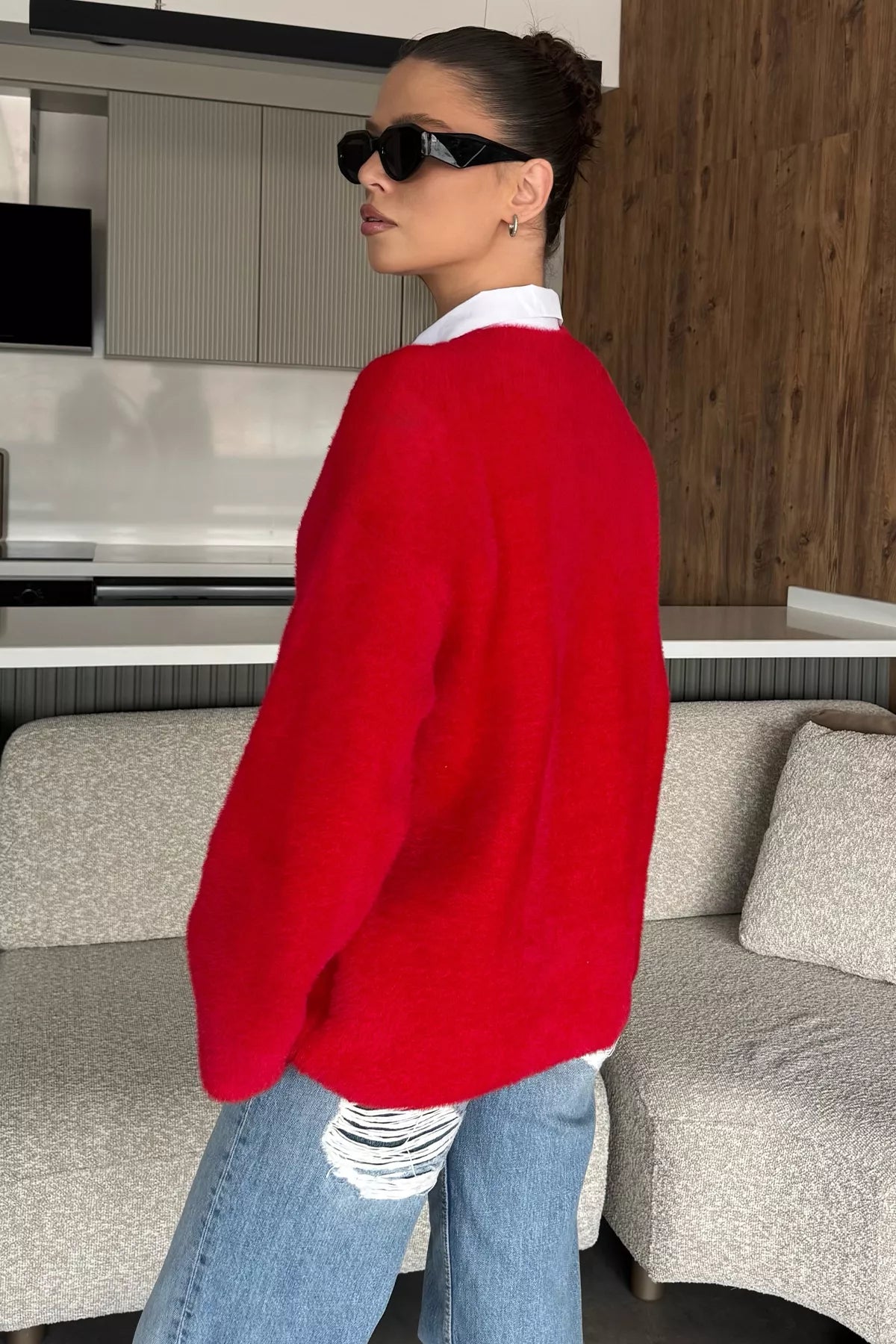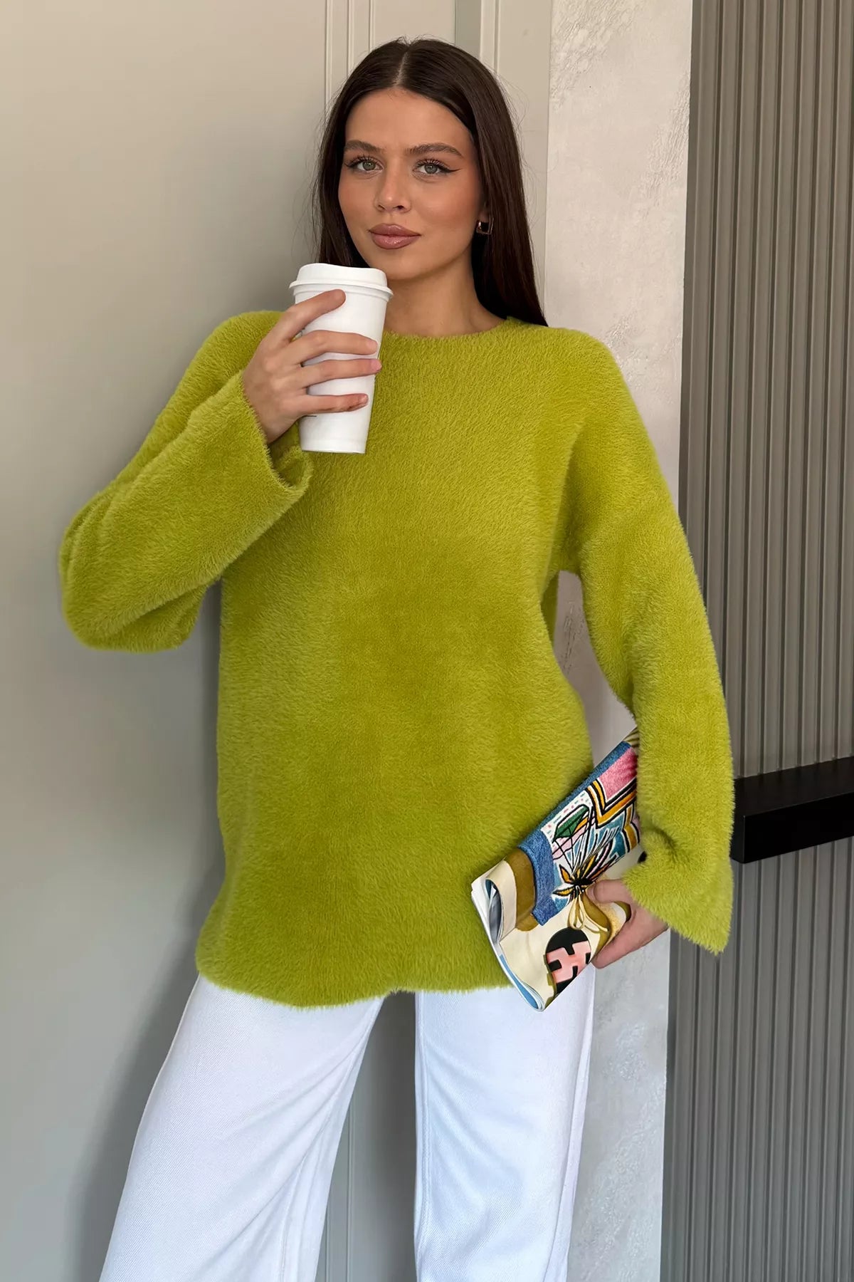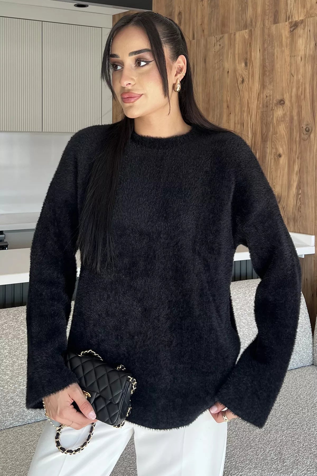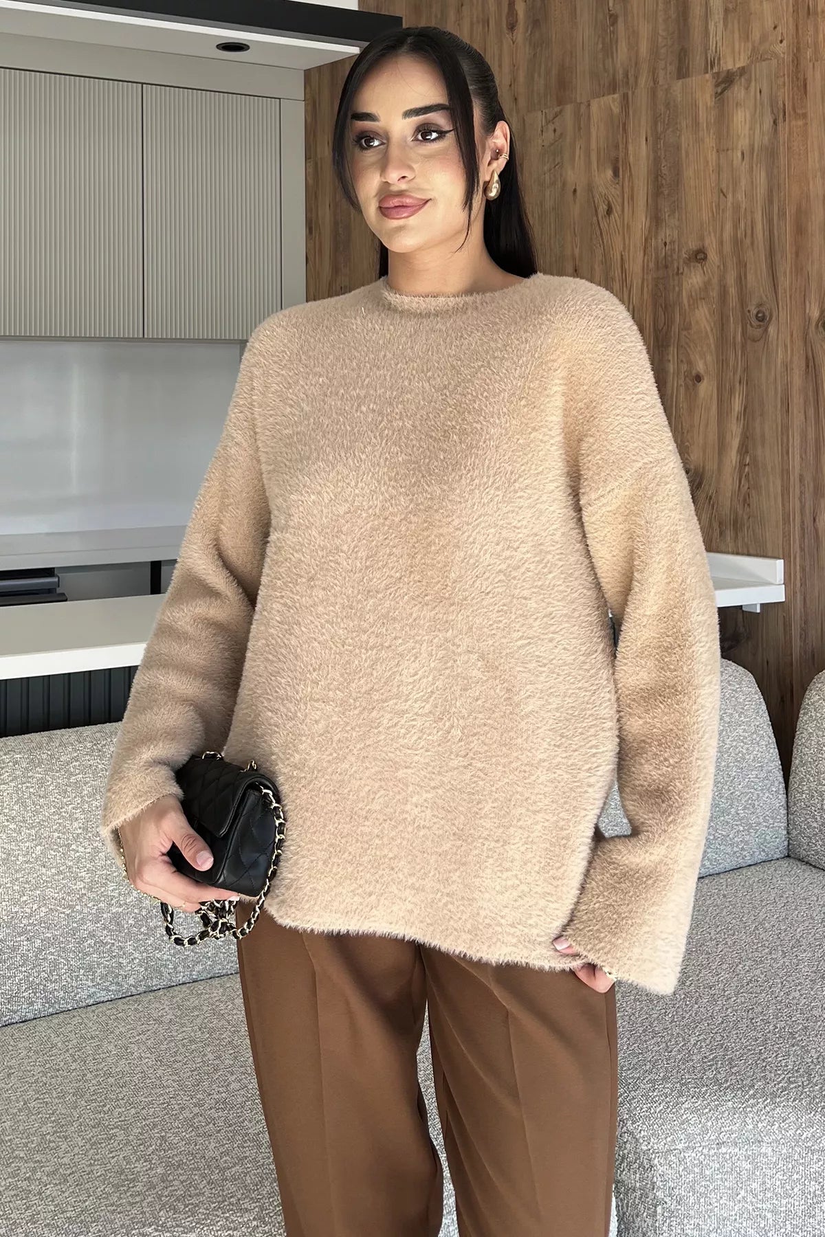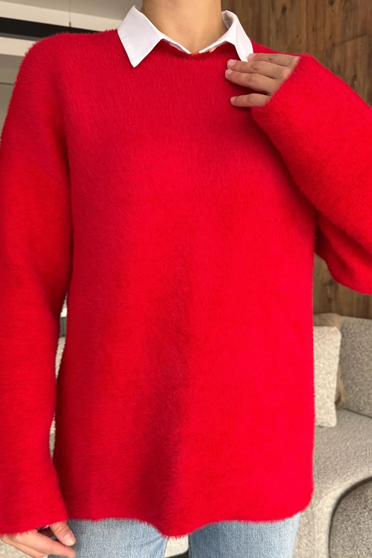 Sakallı triko dokusu, kazak modeline hem zarif hem de modern bir hava katarken; uzun kollu tasarımı soğuk günlerde ekstra koruma sunar. Günlük hayatta jean pantolonlarla rahat bir kombin oluşturabilir, etek veya klasik parçalarla ise şık bir görünüm elde edebilirsiniz.