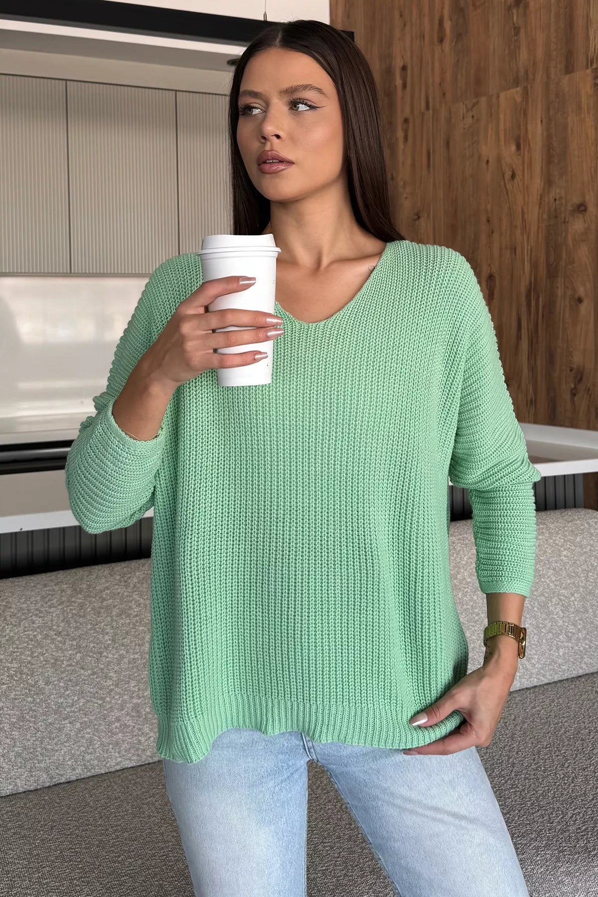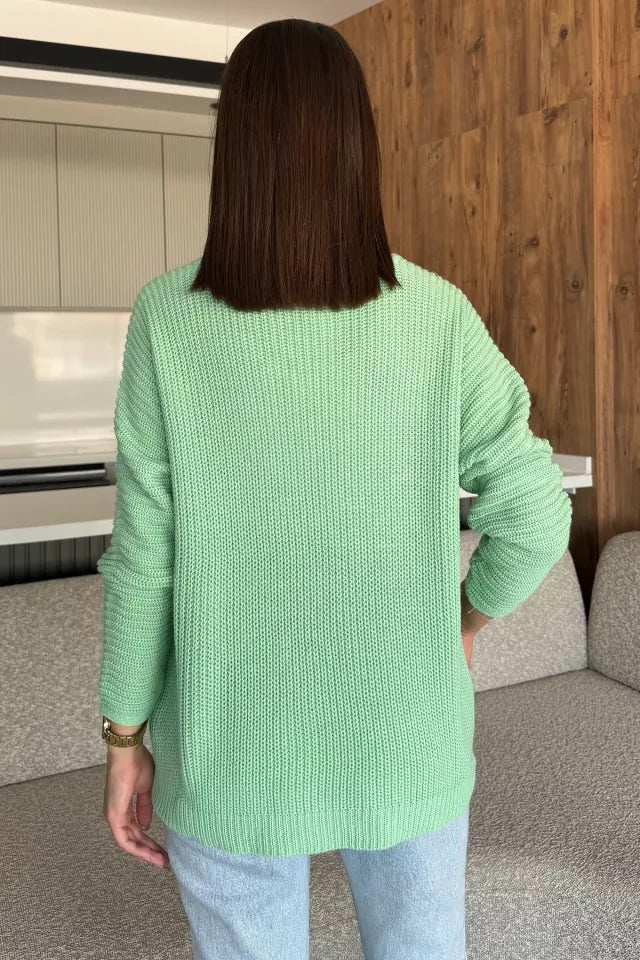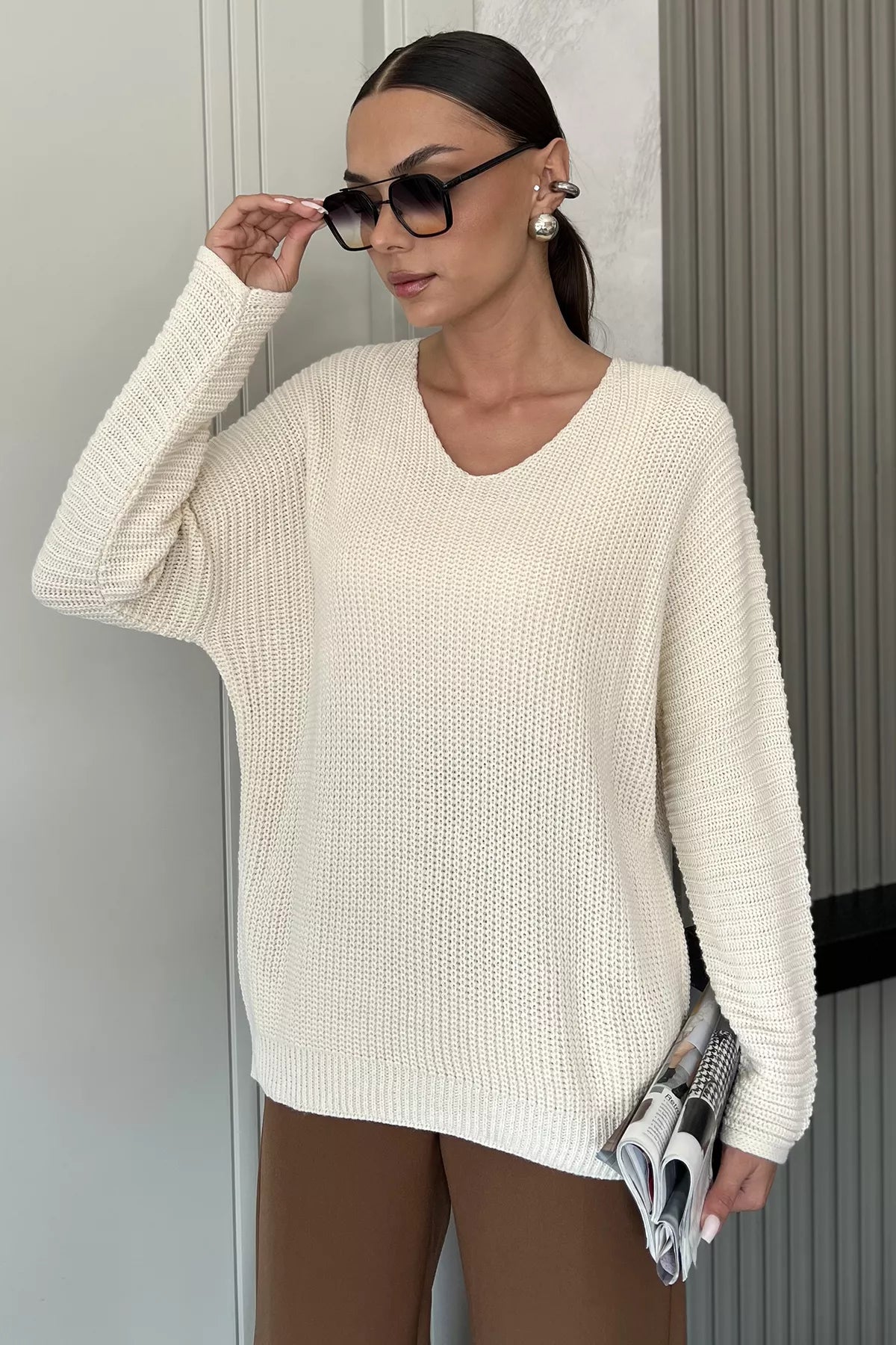 Rahat ve modern tarzıyla öne çıkan triko bluz, salaş kesimi ve sade tasarımıyla günlük şıklığı yansıtıyor. V yaka detayı feminen bir dokunuş katarken, dökümlü yapısı konforlu bir kullanım sağlıyor. Yumuşak dokulu örme kumaşı sayesinde gün boyu rahatlık sunarken, minimal tarzıyla her kombinle kolayca uyum sağlıyor.