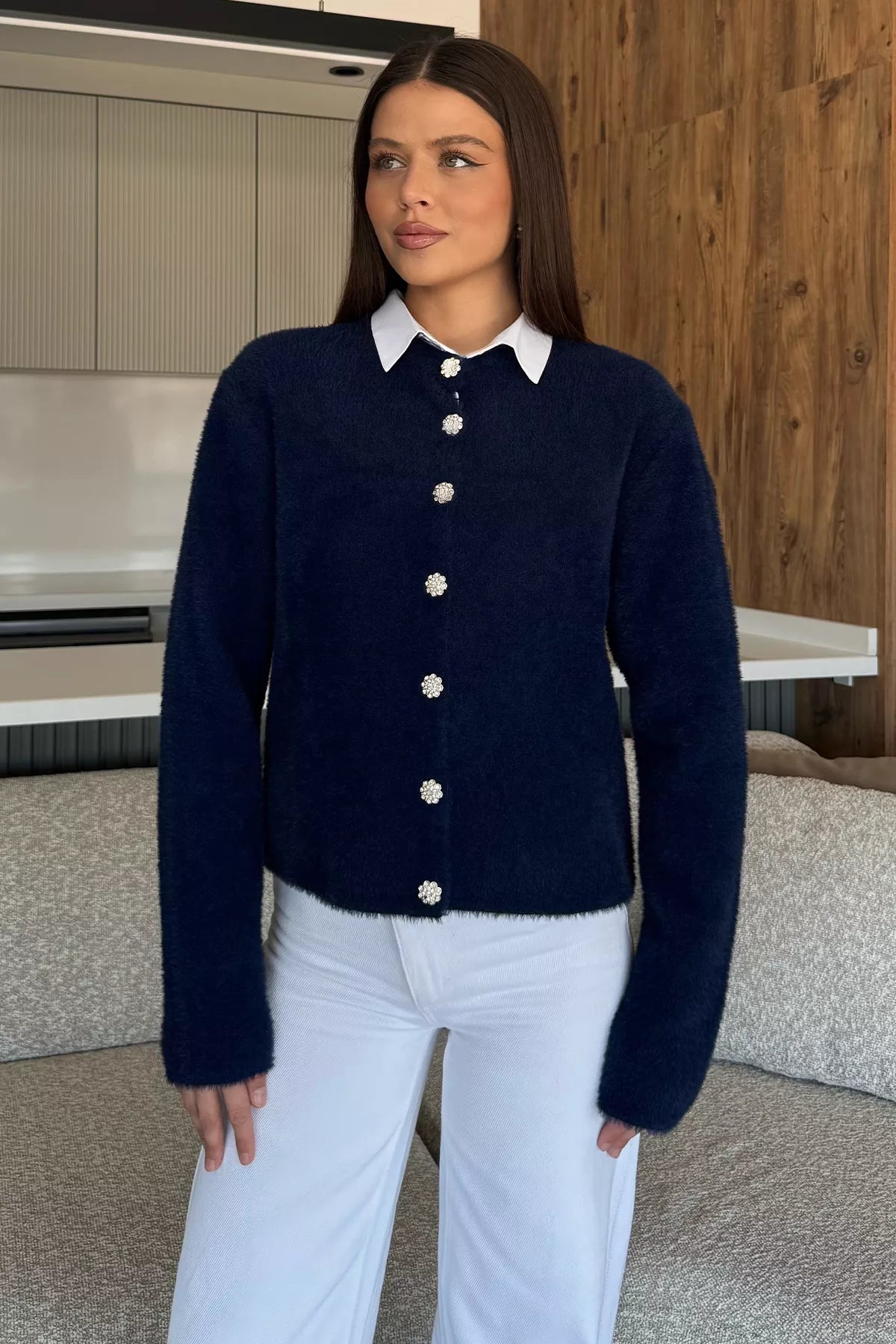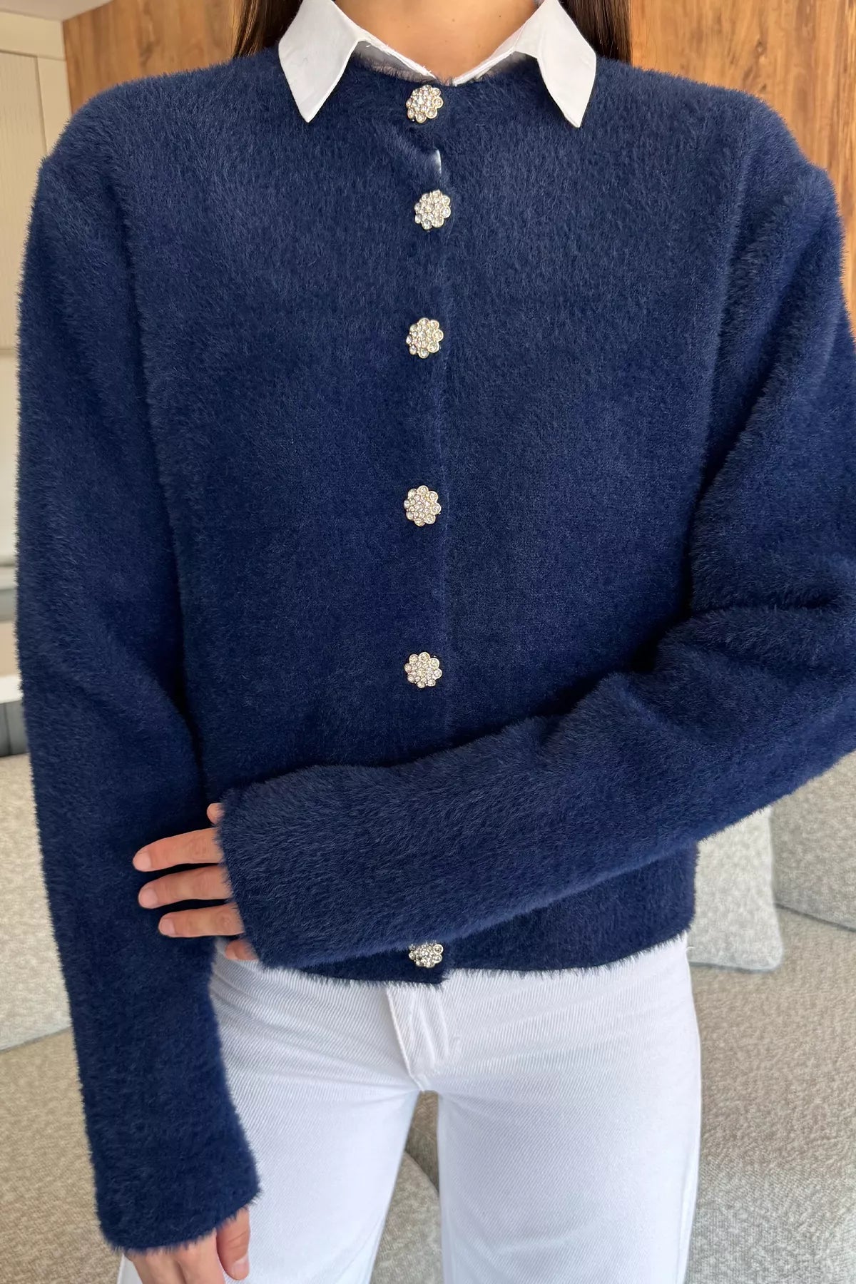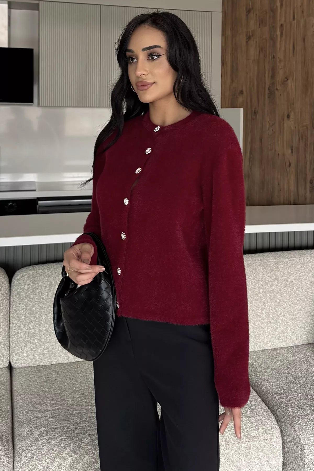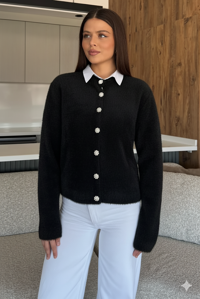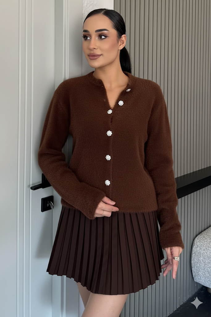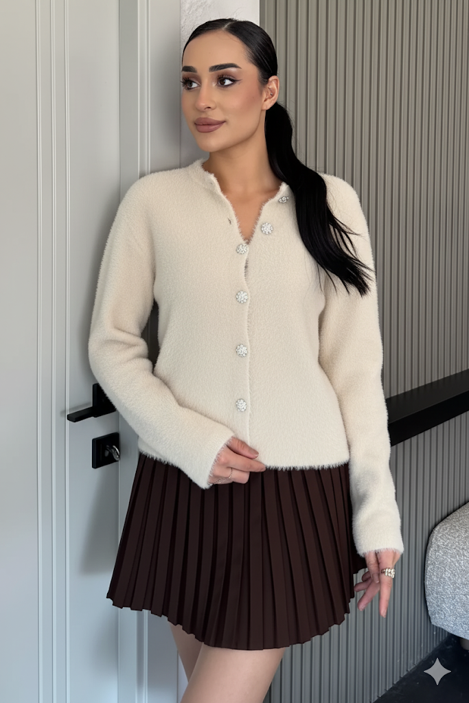 Yumoş İplik Kadın Sakallı Triko Ceket